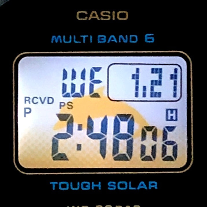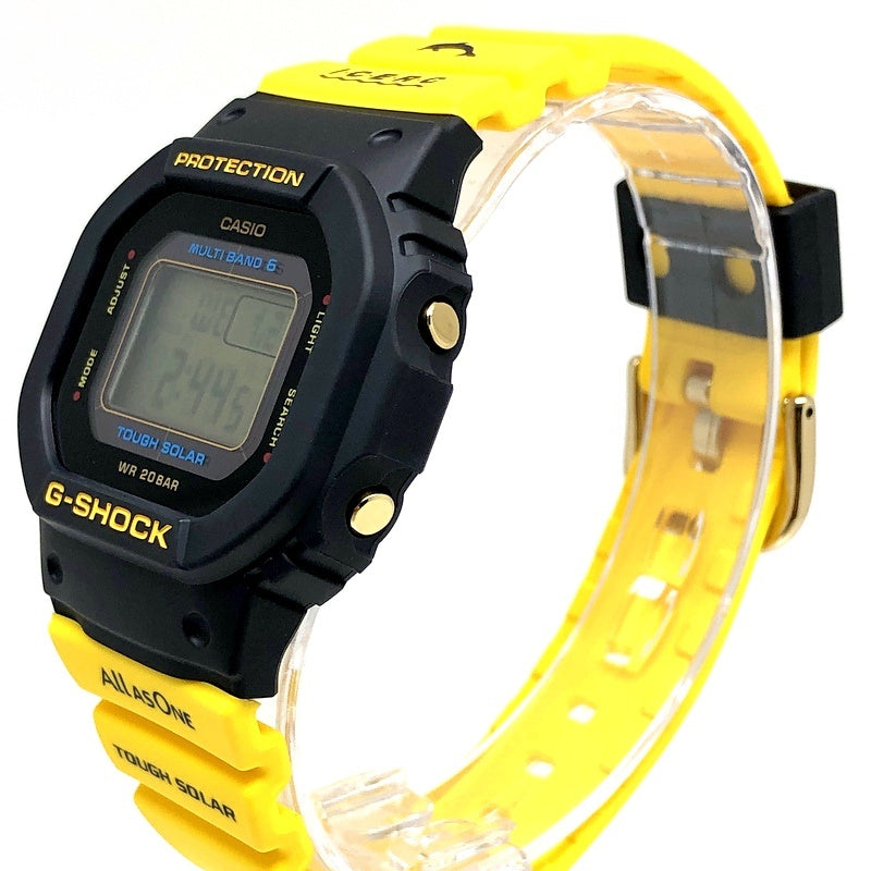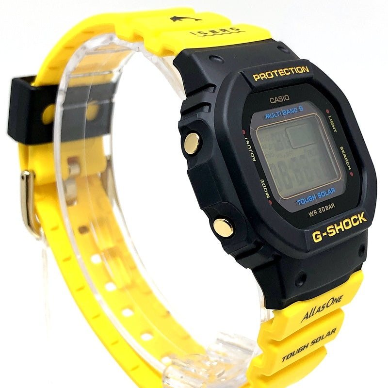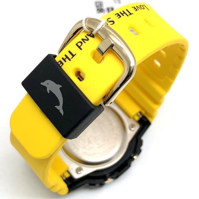 | コメント | 2023年6月に発売されたアイサーチジャパンとのコラボレーションモデルです。初代イルクジモデルDW-6100DWのブラックとイエローのカラーを復刻。ベースモデルはDW-5600を小型・薄型化したGMD-S5600です。バンドにはイルクジのテーマである「Love The Sea And Earth」の文字とICERCのロゴ、遊環にはイルカがプリントされています。LEDバックライト発光時にもイルカが浮かび上がります。 |