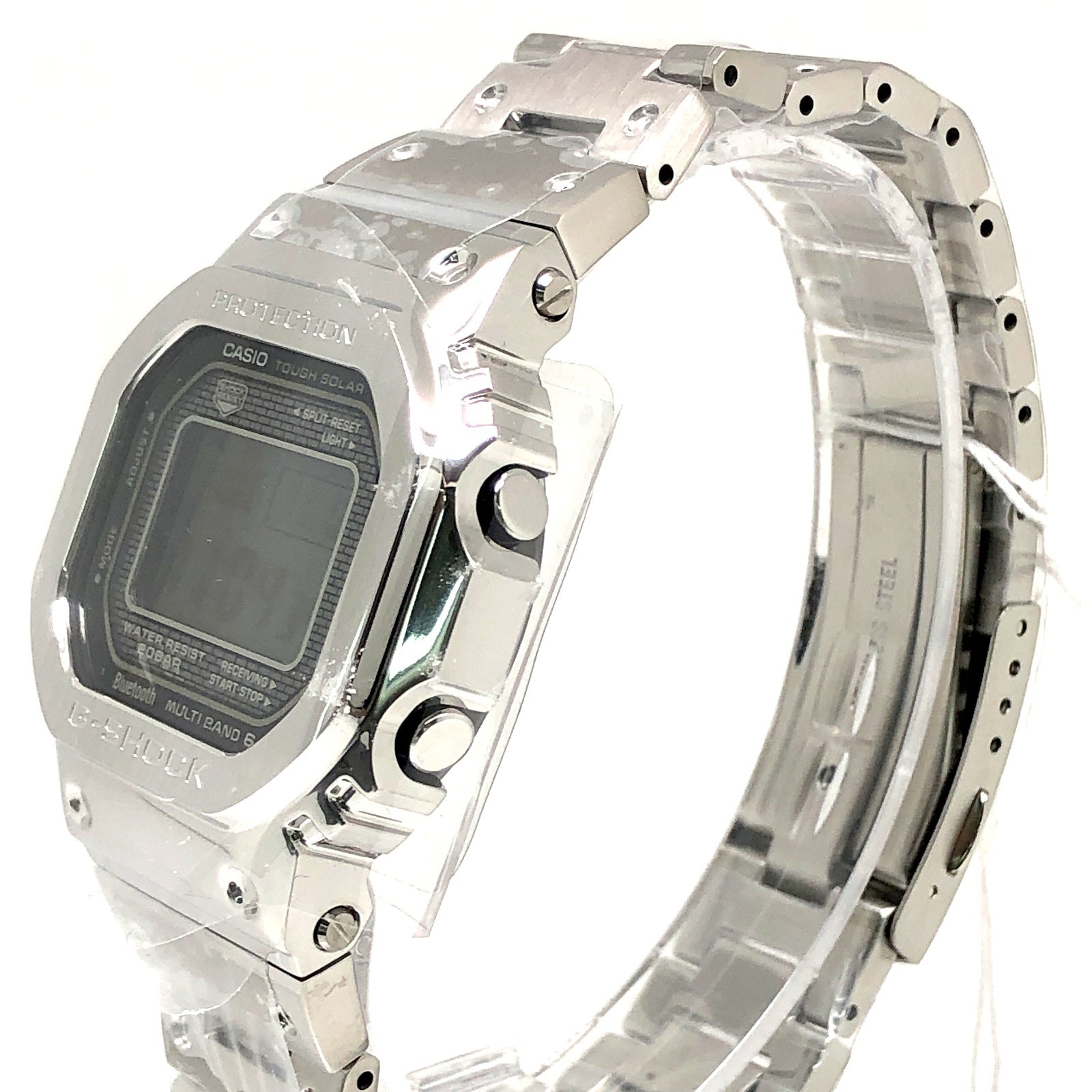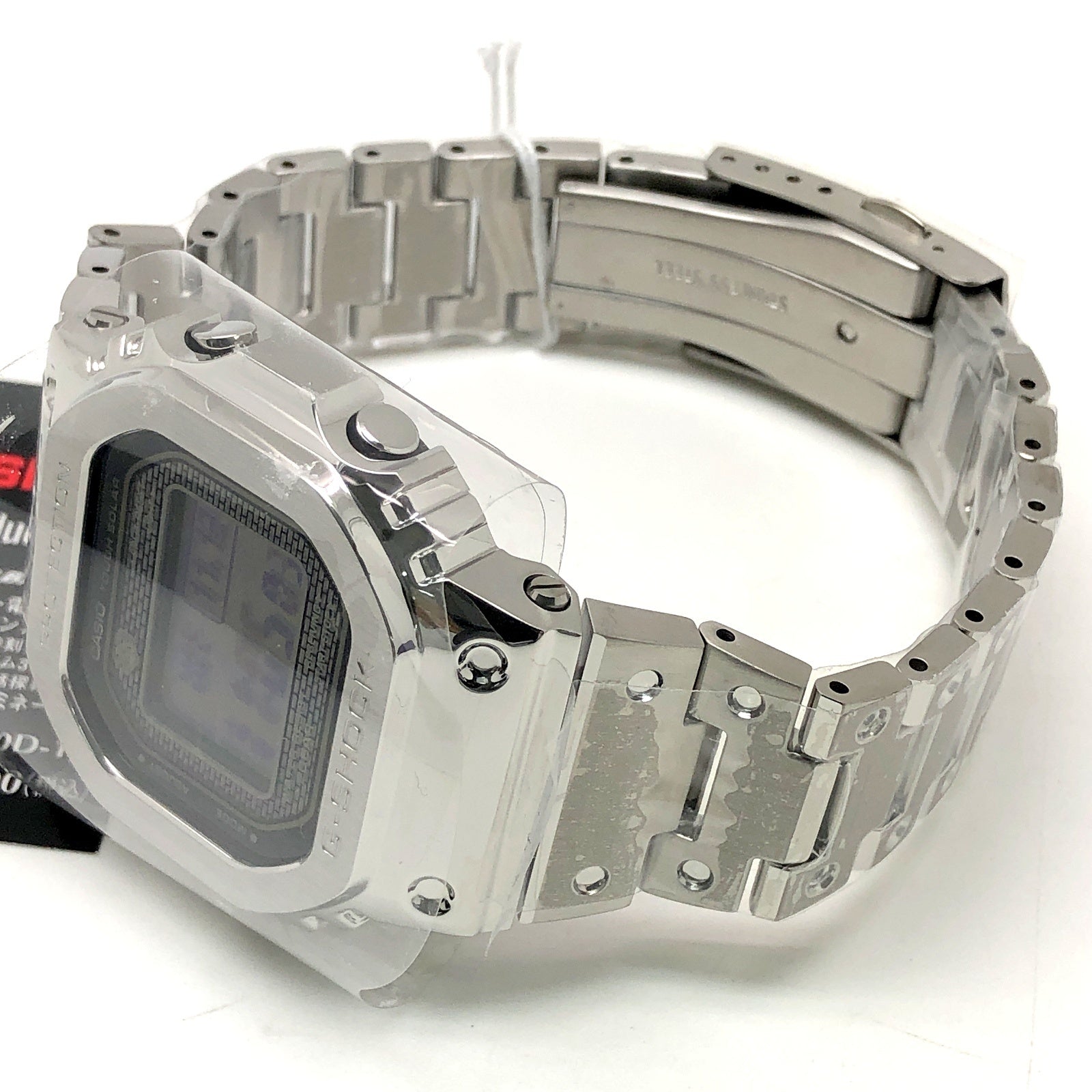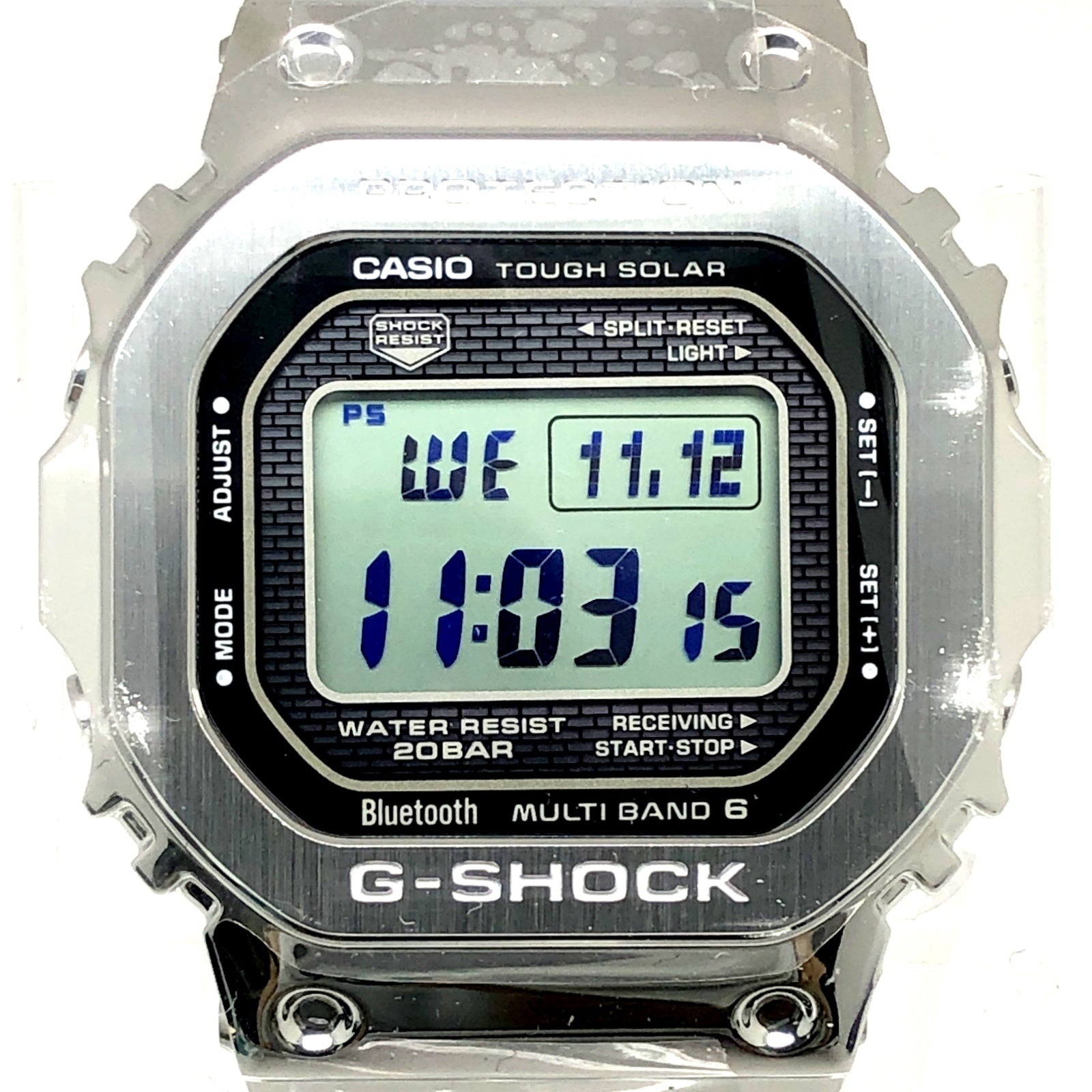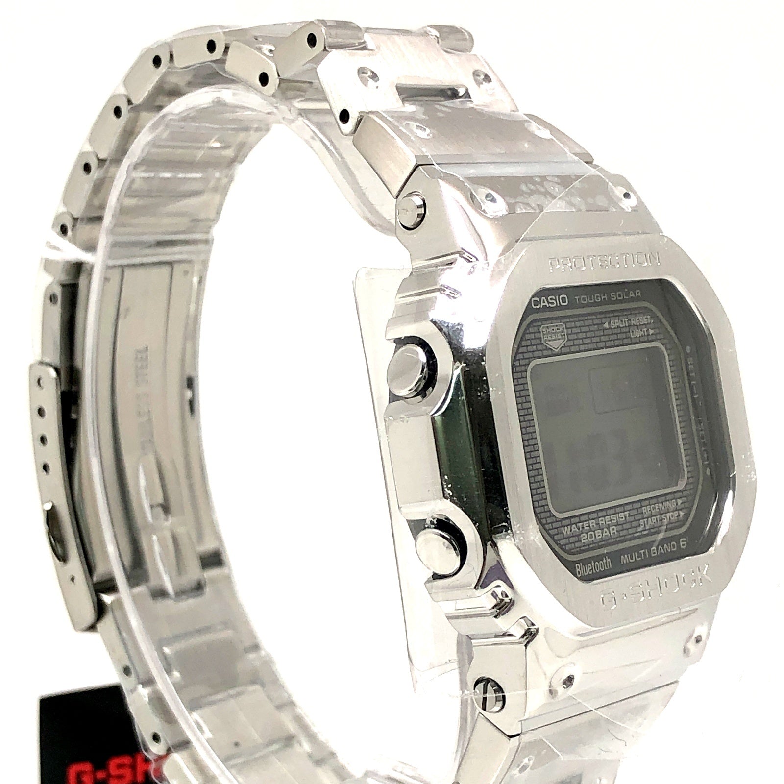 | コメント | 2018年4月に発売された、G-SHOCK初号機DW-5000Cのスクエアデザインはそのままに、スマートフォンリンクなどの先進機能を搭載し、フルメタル化したGMW-B5000シリーズのシルバーモデル。ベゼルやバンド、ケースに至るまでメタル化を実現し、裏蓋にはDLC処理が施されたスクリューバックが採用されています。バックライトには高輝度フルオートLEDライトを採用。タスソーラーとマルチバンド6の電波ソーラー機能に加え、Bluetooth通信機能でアプリと連動することで、より正確な時刻情報を取得することができます。 |