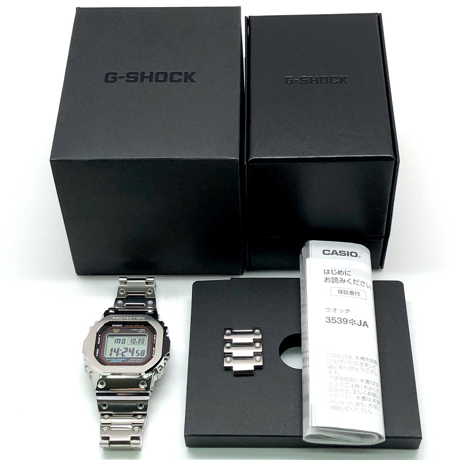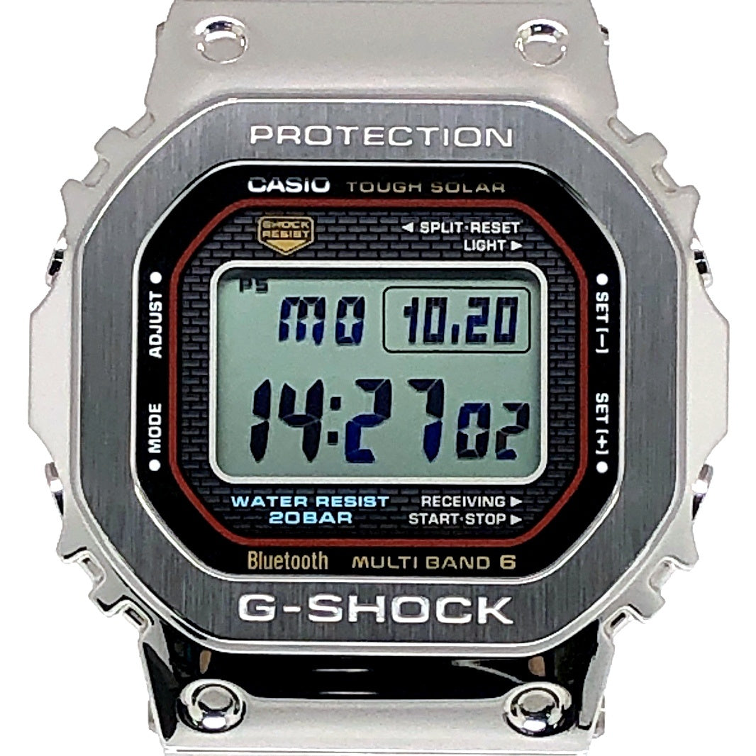 | コメント | 2025年6月に発売された、G-SHOCK初号機のスクエアデザインはそのままに、スマートフォンリンクなどの先進機能を搭載し、フルメタル化したGMW-B5000シリーズに初代DW-5000C-1のダイヤルカラーが採用されたモデル。ベゼルやバンド、ケースに至るまでメタル化を実現し、裏蓋にはDLC処理が施されたスクリューバックが採用されています。バックライトには高輝度フルオートLEDライトを採用。タスソーラーとマルチバンド6の電波ソーラー機能に加え、Bluetooth通信機能でアプリと連動することで、より正確な時刻情報を取得することができます。 |