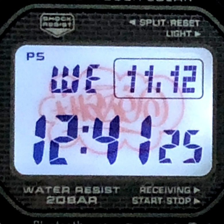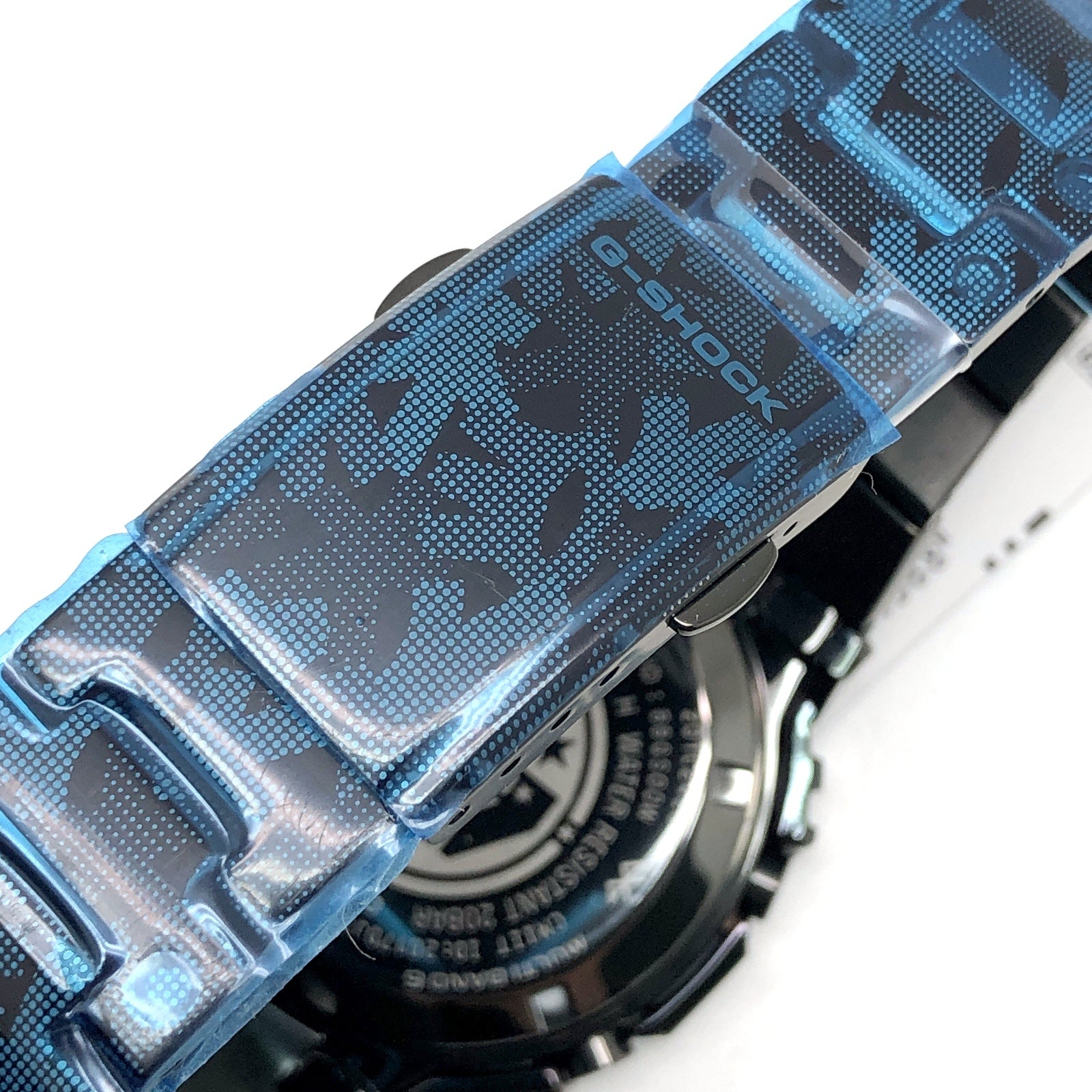 | コメント | 2022年10月に、G-SHOCKの誕生40周年を記念して発売された、ニューヨークの伝説的グラフィックデザイナー「ERIC HAZE(エリックヘイズ)」とのコラボレーションの出る。ベースにはタフソーラーとマルチバンド6の電波ソーラー機能とBluetooth通信機能が搭載されたフルメタルモデルのGMW-B5000を採用。全体にブラックIP処理が施され、バンドにはレーザー彫刻によるドットパターンのグラフィックがデザインされています。裏蓋にはエリックヘイズ氏自身がデザインされた40周年記念ロゴが刻印され、LEDバックライト発光時にはグラフィティタグが浮かび上がります。 |