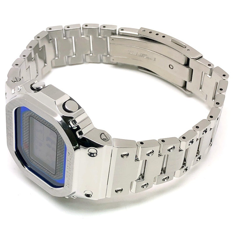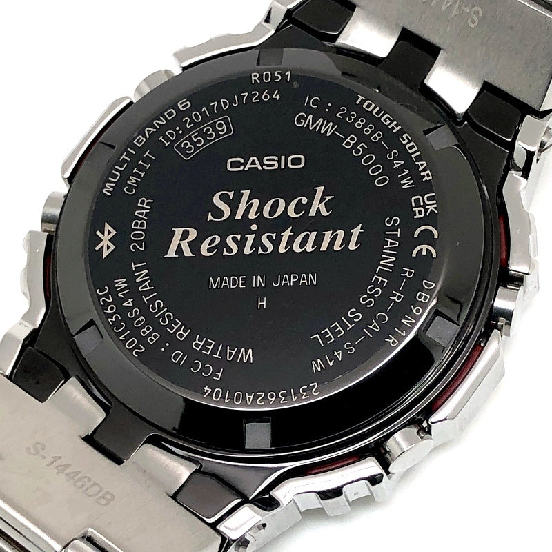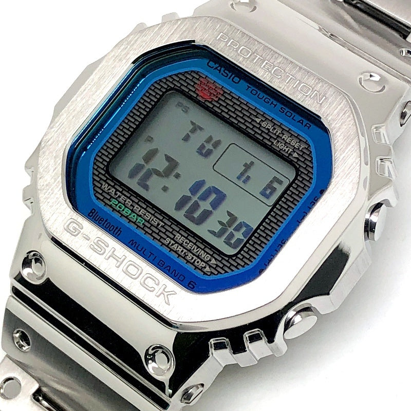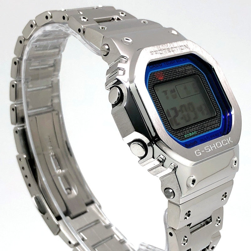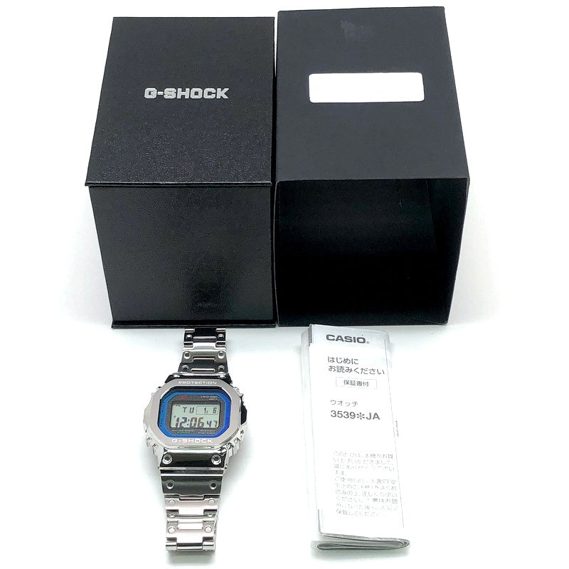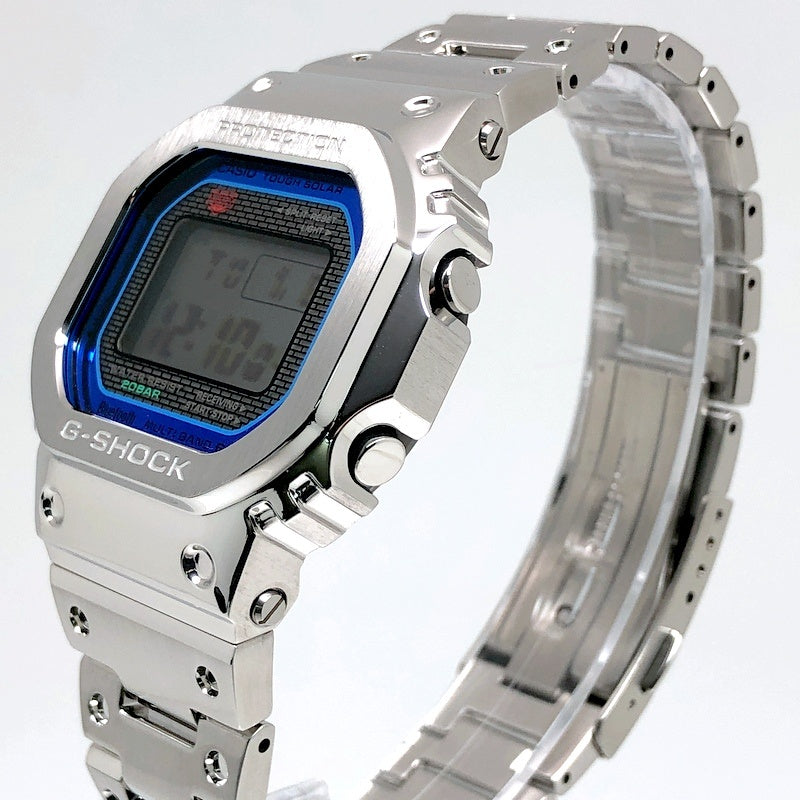 | コメント | 2024年4月に発売された、G-SHOCK初号機DW-5000Cのスクエアデザインはそのままに、スマートフォンリンクなどの先進機能を搭載し、フルメタル化したGMW-B5000シリーズのダイヤルにレインボーカラーが採用されたモデル。ベゼルやバンド、ケースに至るまでメタル化を実現し、裏蓋にはDLC処理が施されたスクリューバックが採用されています。バックライトには高輝度フルオートLEDライトを採用。タスソーラーとマルチバンド6の電波ソーラー機能に加え、Bluetooth通信機能でアプリと連動することで、より正確な時刻情報を取得することができます。 |