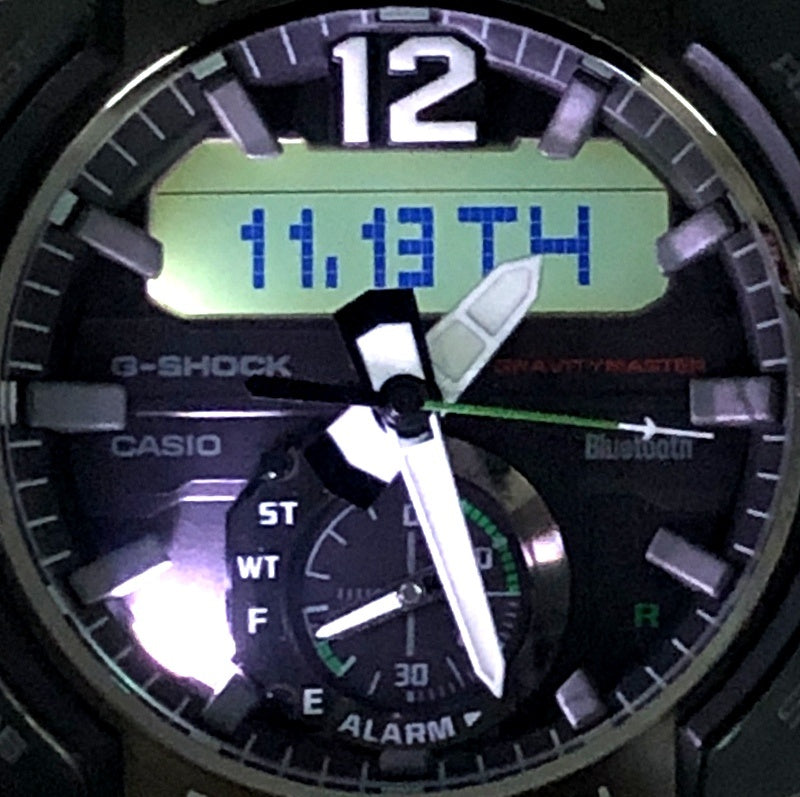 | コメント | 2018年7月に発売された、フライトに求められる正確さと機能性を備えたGRAVITYMASTER(グラビティマスター)のBluetooth通信機能搭載モデル。航空機や旅客に採用されているグラスコックピットをイメージしてデザインされており、視認性向上のために大型の時分針とインデックスが採用されています。Bluetooth通信機能で専用アプリ「CASIO WATCHES」と連携することにより正確な時刻情報を取得することができます。 |