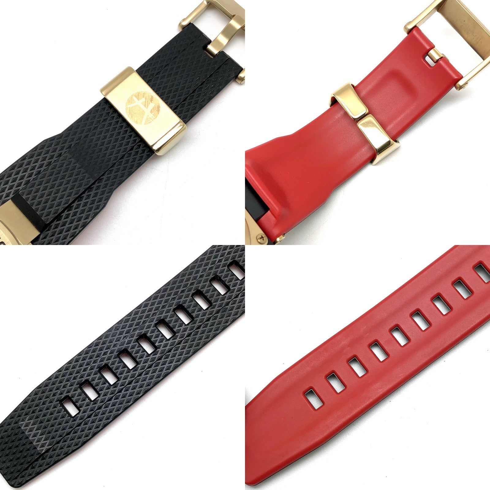| コメント | 2024年9月に発売されたNBAプロバスケットボールプレイヤー「八村塁選手」のシグネチャーモデル第1弾。ベースモデルにはGST-B100が採用され、タフソーラーとスマートフォンリンクが搭載されています。ブラックを基調にメタル部分にエッジの効いたゴールドIPが施され、差し色にはG-SHOCKのブランドカラーと八村塁選手の情熱を表すレッドが採用されています。八村塁選手の名前や背番号の「8(八)」から8時のインデックスやボタン、ディスク針やベルト裏にレッドが採用。裏蓋には八村塁選手のロゴが刻印され、遊環にも同様のロゴが刻印された特別仕様です。 |