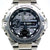 | コメント | 2021年5月に発売された、部品の小型化とモジュールの薄型化により、スリムでデザイン性が向上したG-STEEL。薄型化しながらも、Bluetooth機能とタフソーラー機能は維持され、消費電力も削減されています。ベルトとベゼルはスタンダードなシルバーが採用され、文字盤はブラックとグレーでシックに仕上げられています。操作面では大型のサイドボタンが採用されており、デザイン性に加えて、実用性も向上されています。 |