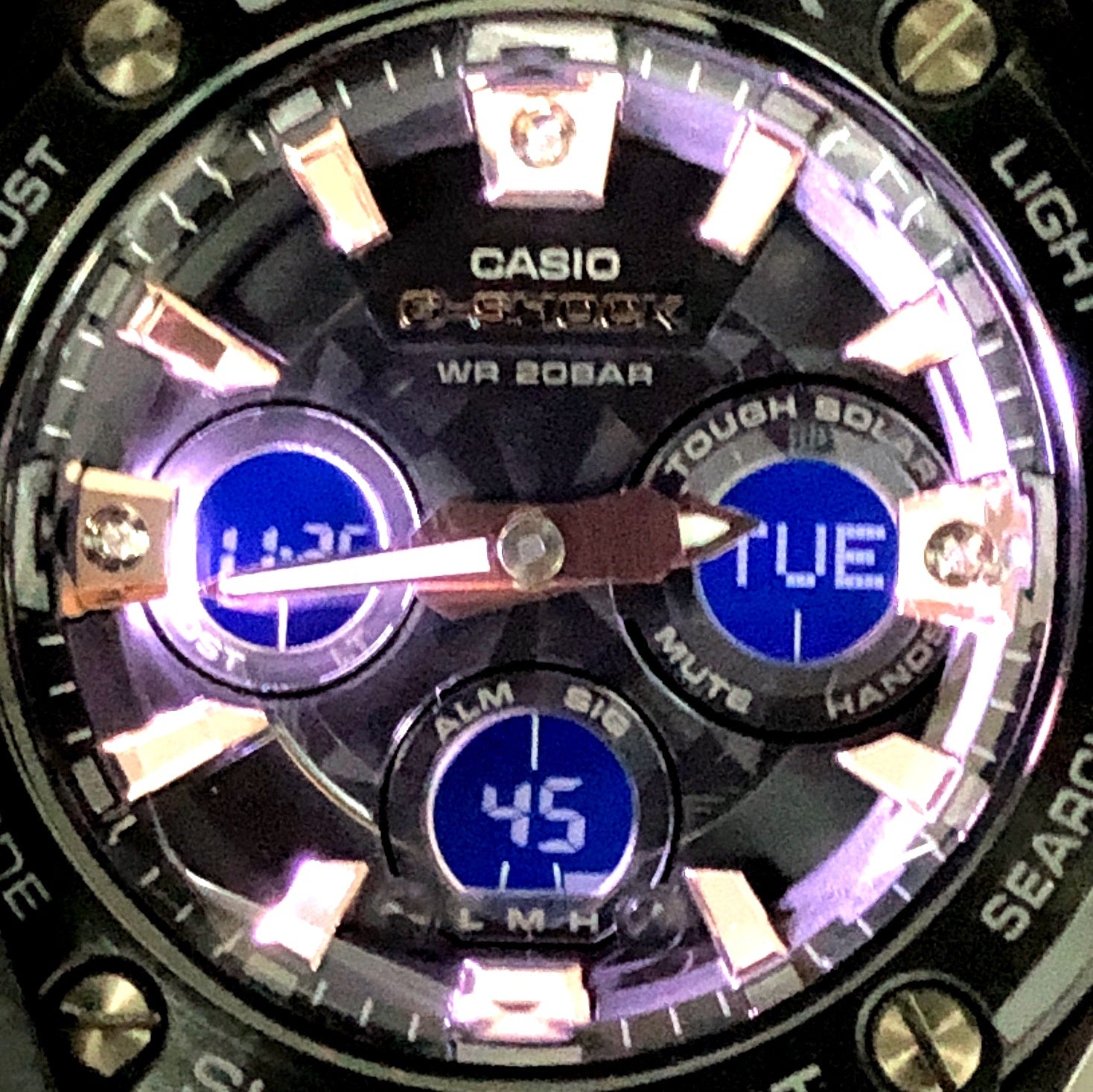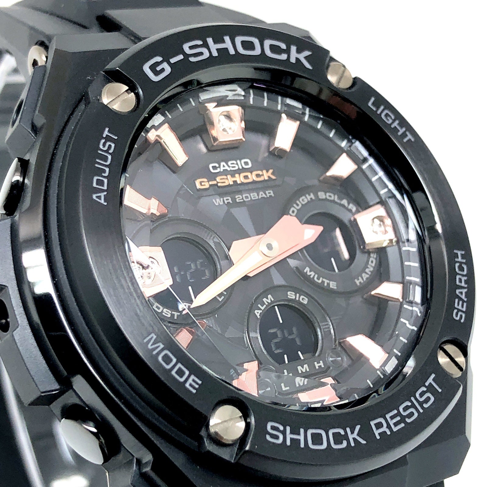 | コメント | 2018年11月に発売された、PRECIOUS HEART SELECTION(プレシャスハートコレクション)の海外モデル。ベースにはメタルと樹脂が融合したG-STEELのミッドサイズのタフソーラーモデルGST-S310を採用。ブラックを基調にデザインされており、インデックスや時分針にはローズゴールドが採用されています。12時・3時・9時位置には「永遠の絆」の象徴である天然ダイヤモンドが配置され、風防にはダイヤモンドをイメージしたカッティングガラスが採用されています。※国内モデルのGST-W310BDD-1Aはマルチバンド6の電波受信機能が搭載されていますが、こちらの海外モデルには非搭載です。 |