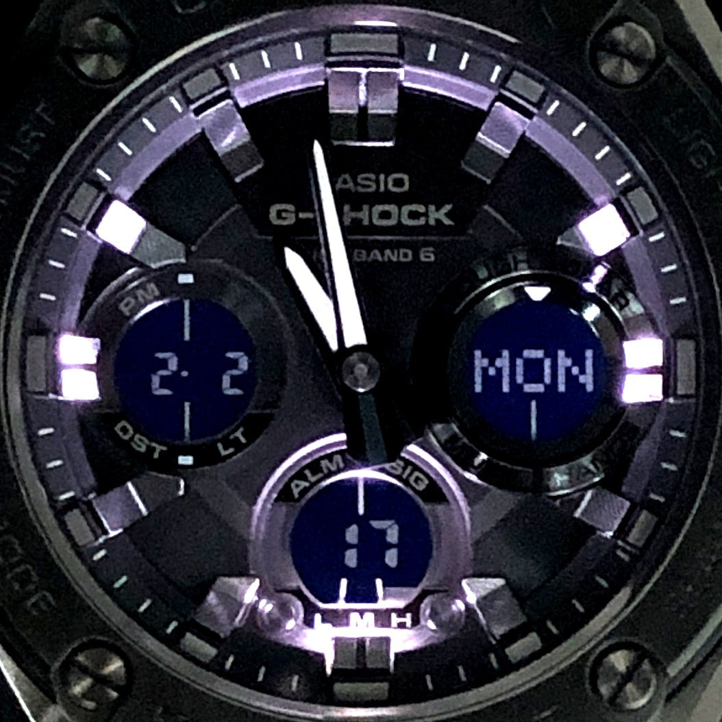 | コメント | 2025年6月に発売された「レイヤーガード構造」が採用された「G-STEEL(ジースチール)」です。ベゼル部に異なる素材を使用し、二層構造にすることで耐衝撃性が強化されています。タフソーラーとマルチバンド6の電波ソーラー機能とダブルLEDライトが搭載。メタルベゼルと樹脂バンドの組み合わせにより、普段使いからビジネスシーンまで幅広く着用できる、実用性の高いG-SHOCKです。 |