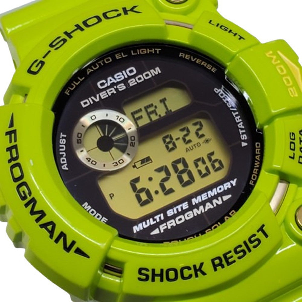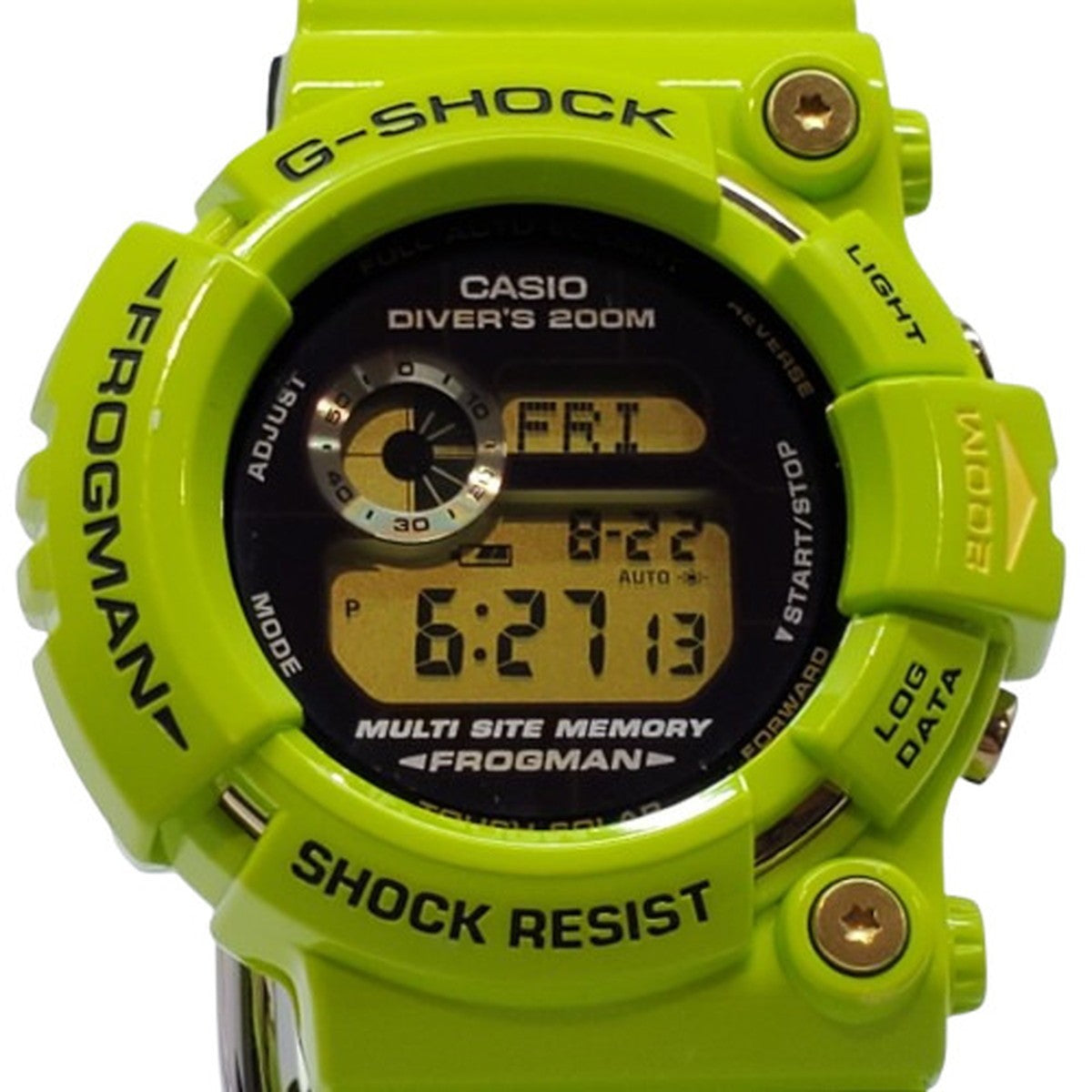 | 状態詳細 | G-SHOCK FROGMAN GW-200F-3JR 「雨蛙モデル」 2009年イルカクジラモデルとして登場した、コレクター人気の高い一本です。 鮮やかなリーフライムグリーンのボディが印象的で、唯一無二の存在感を放ちます。 タフソーラーを搭載し、機能面も申し分なし。実用時計としてはもちろん、希少な限定品としてコレクション価値も高いモデルです。コンディションも良好で目立つような汚れ、傷などは少なく、まだまだ使用していただける商品です。付属品は箱と説明書付き。レアモデルをお探しの方にぜひおすすめしたい逸品です。 |