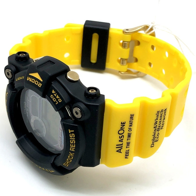 | コメント | 2004年6月に発売されたイルクジ2004年モデルです。タフソーラーが搭載された4代目FROGMAN(フロッグマン)のGW-200をベースに、初代イルカクジラモデルの黒と黄のカラーリングを再現し復刻。裏蓋には「Love The Sea And The Earth」のシンボルマークが刻印され、ELバックライト発光時にはマッコウクジラが浮かび上がります。 |