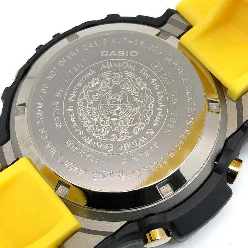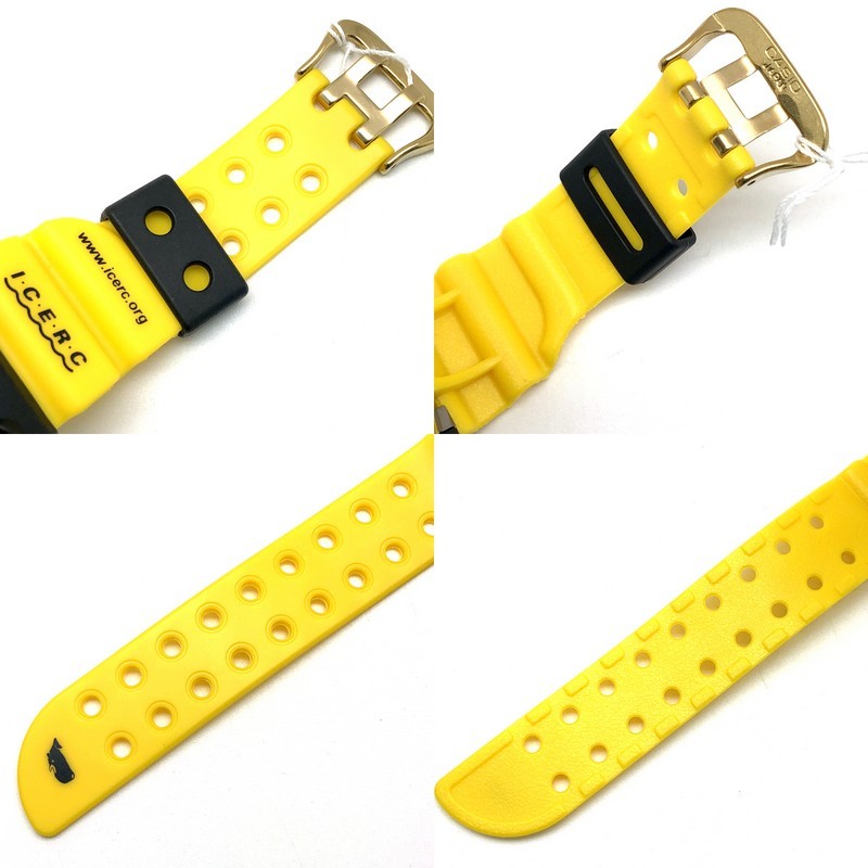 | コメント | 2004年6月に発売されたイルクジ2004年モデルです。タフソーラーが搭載された4代目FROGMAN(フロッグマン)のGW-200をベースに、初代イルカクジラモデルの黒と黄のカラーリングを再現し復刻。裏蓋には「Love The Sea And The Earth」のシンボルマークが刻印され、ELバックライト発光時にはマッコウクジラが浮かび上がります。 |