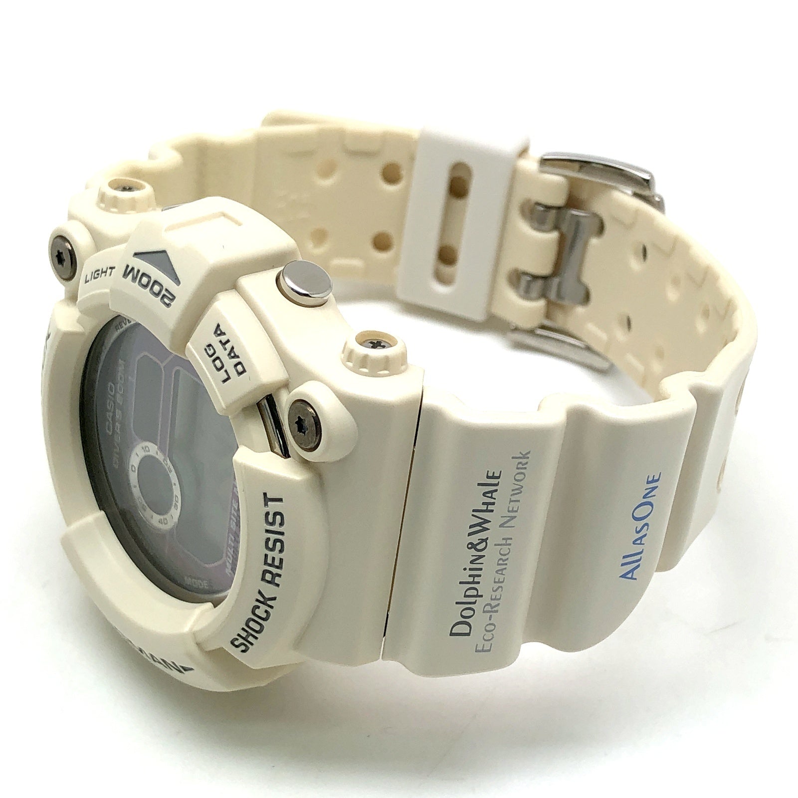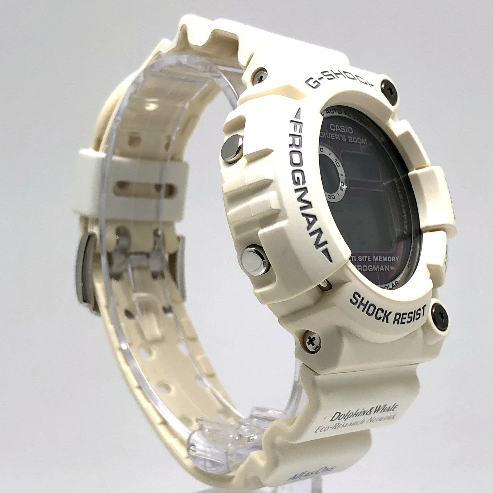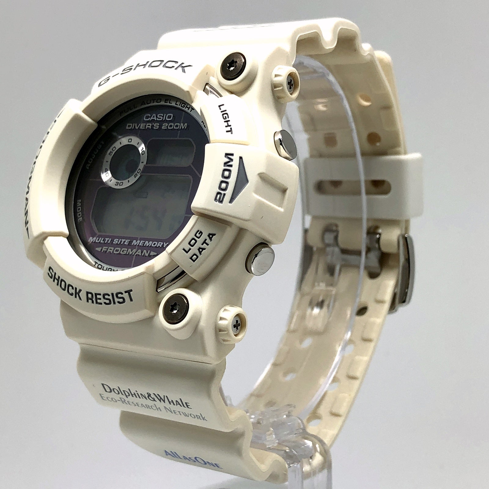 | コメント | 20066月に発売された、イルカとクジラ、海の自然の素晴らしさや大切さを伝 える活動している「ICERC(アイサーチジャパン)」とのコラボレーションモデル。2006年は「第6回イルカクジラエコリサーチネットワーク」としてサポート。タフソーラーを搭載したFROGMANのGW-200をベースに、ベゼルとバンドは「ALL AS ONE」をテーマに柔らかいカラーリングのホワイトでデザインされています。バンドにはアイサーチジャパンのロゴと「ALL AS ONE」の文字がフリントされており、。Lバックライト発光時にもブリーチングクジラが浮かび上がります。 |