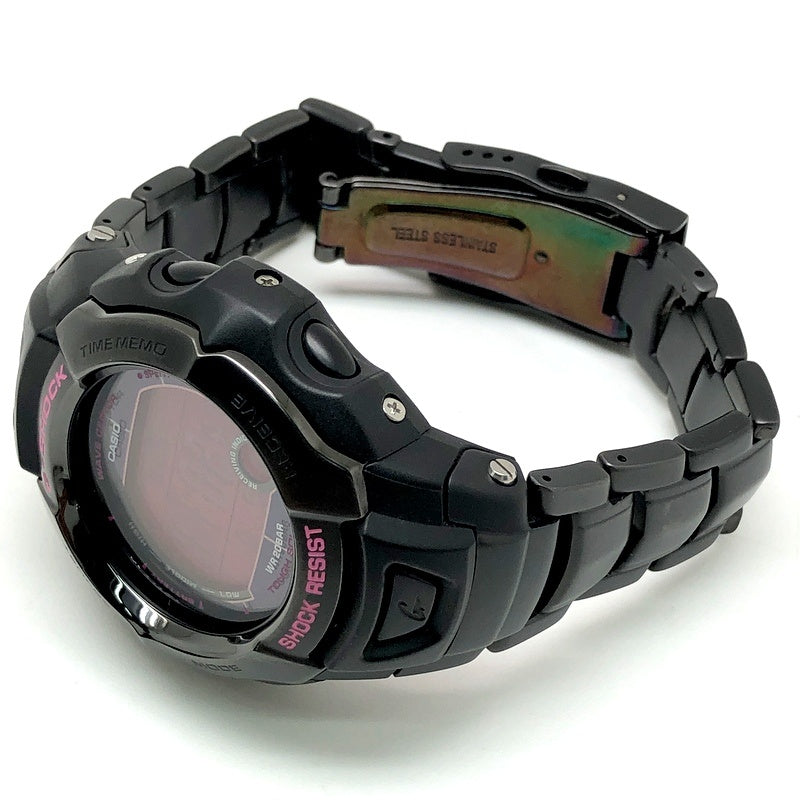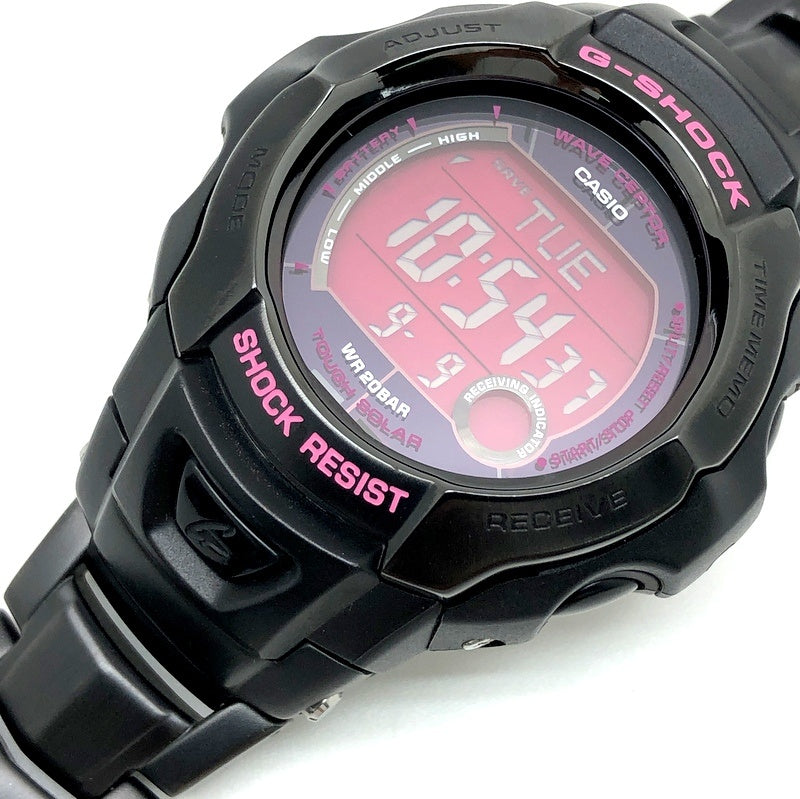 コメント | 2011年2月に発売された、タフソーラーと電波受信機能(日本・北米対応)が搭載された電波ソーラーモデル「The G」のピンクカラーモデル。ステンレススチールのベゼルとバンドにはブラックIP加工が施され、液晶やロゴには鮮やかなピンクが採用されています。スマートかつスタイリッシュなデザインに仕上げられたG-SHOCKです。 |
