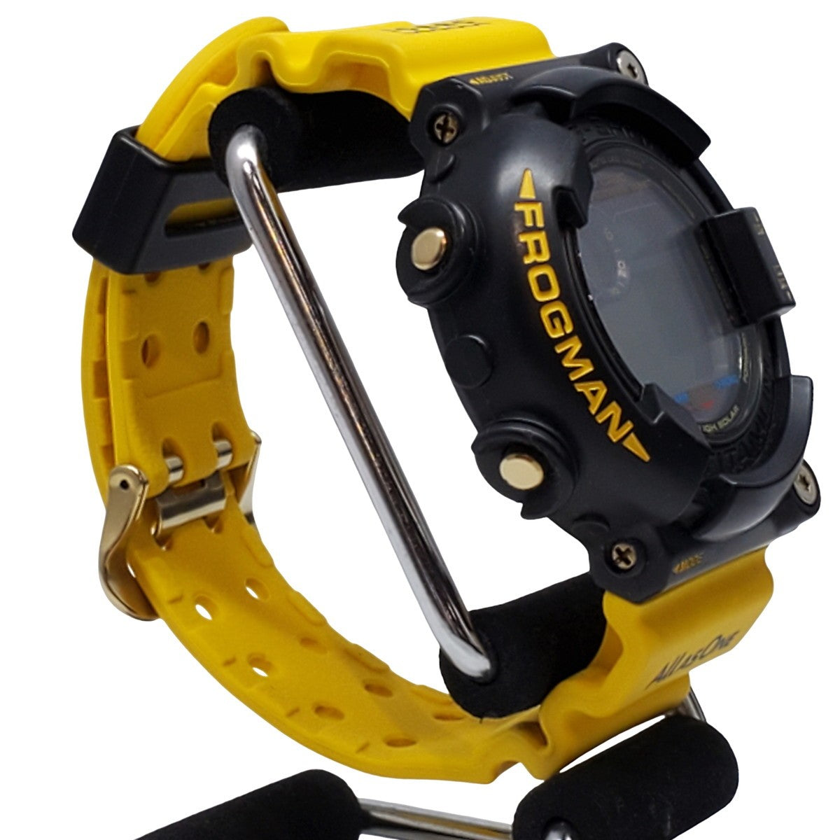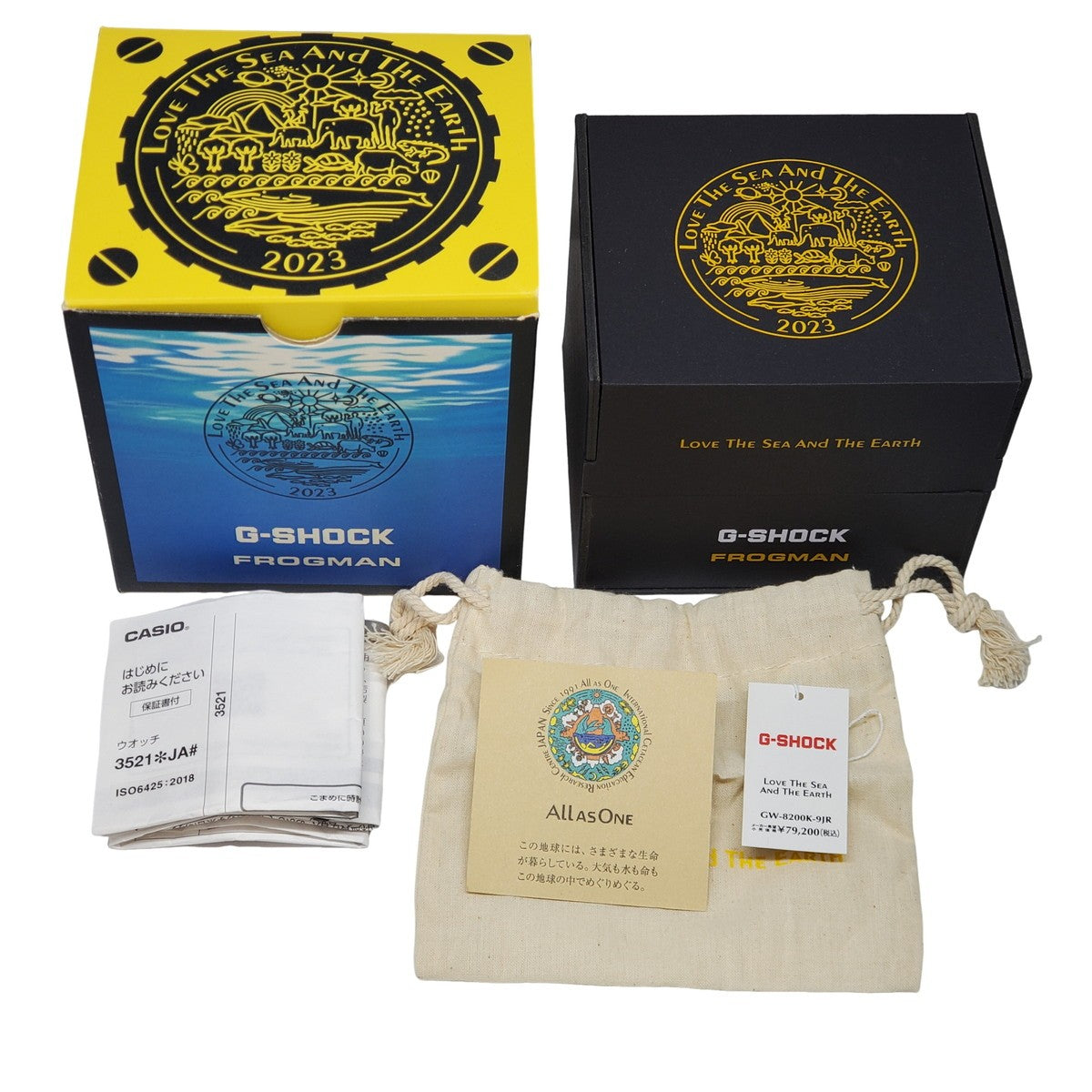 | コメント | 2023年6月に発売された「ICERC(アイサーチジャパン)」とのコラボレーションシリーズ「イルカ・クジラモデル2023」です。ベースはチタンケースにタフソーラーが搭載されたFROGMANで、初代モデルのカラーであるブラック×イエローが採用されています。バンドにはアイサーチジャパンのロゴがプリントされ、裏蓋には「Love The Sea And The Earth」のシンボルマークが刻印されています。LEDバックライト発光時にはブリーチングしているクジラが浮かび上がります。 |