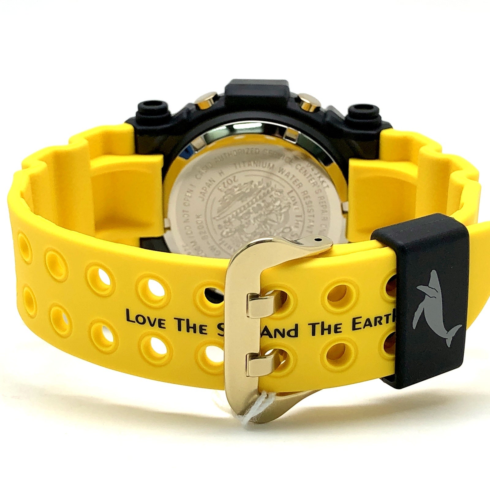 | コメント | 2023年6月に発売された「ICERC(アイサーチジャパン)」とのコラボレーションシリーズ「イルカ・クジラモデル2023」です。ベースはチタンケースにタフソーラーが搭載されたFROGMANで、初代モデルのカラーであるブラック×イエローが採用されています。バンドにはアイサーチジャパンのロゴがプリントされ、裏蓋には「Love The Sea And The Earth」のシンボルマークが刻印されています。LEDバックライト発光時にはブリーチングしているクジラが浮かび上がります。 |