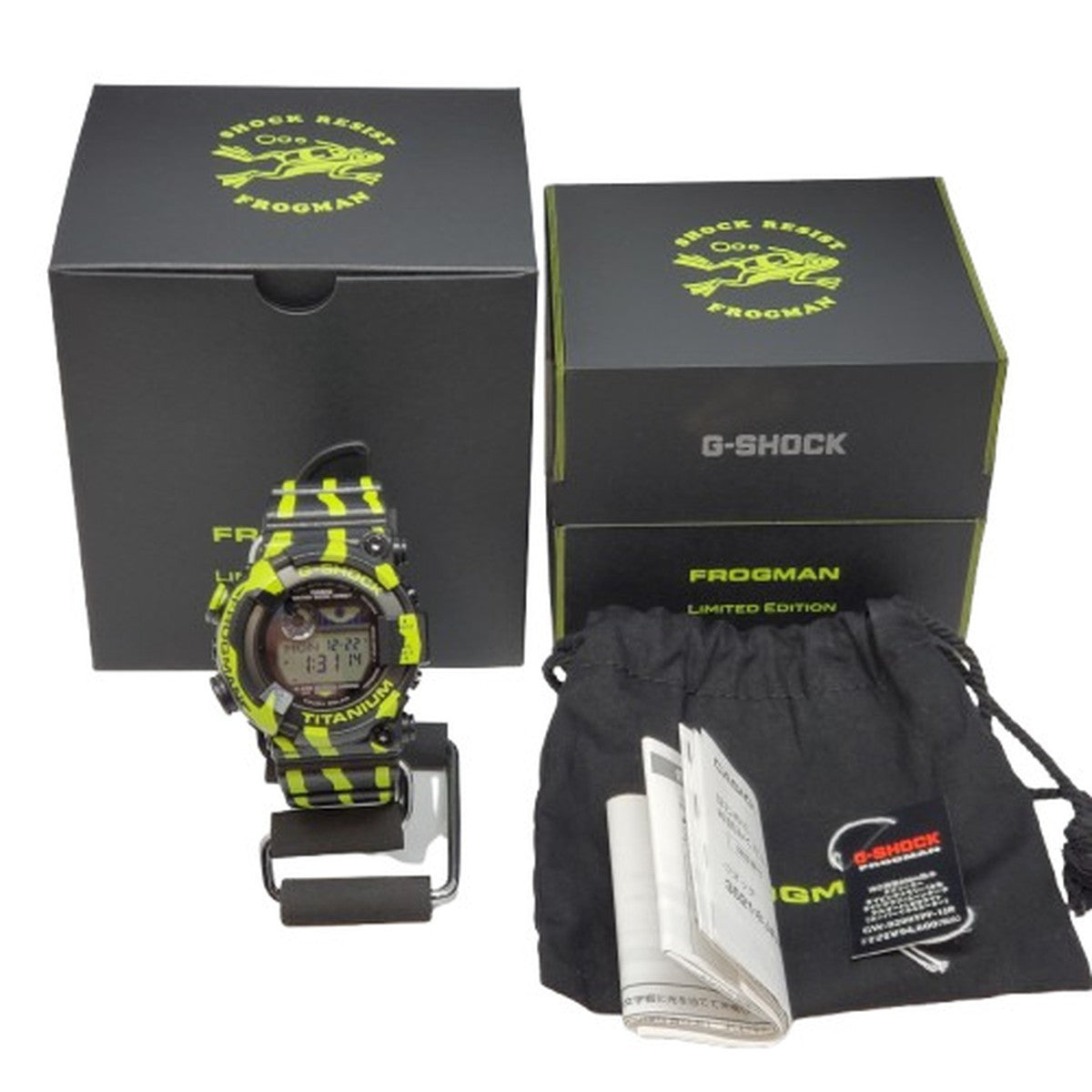 | 状態詳細 | G-SHOCK最高峰のダイバーズ。FROGMANの最新進化モデル。 ISO規格200m潜水用防水を備えた、本格ダイバーズウォッチ「FROGMAN」。左右非対称ケースのアイコニックなデザインはそのままに、カーボンコアガード構造を採用することで、軽量化と高強度を両立しています。 本モデル「GW-8200TPF-1」は、ブラックを基調としたタフで引き締まったカラーリングが特徴。タフソーラーと電波受信(マルチバンド6)を搭載し、過酷な環境下でも正確な時刻表示と高い信頼性を誇ります。 ダイビングはもちろん、ミリタリーやストリートスタイルとも相性抜群。G-SHOCKの中でも“究極のタフネス”を体現するフラッグシップモデルです。 コンディションは良好で大変綺麗な商品となっており美品です。※付属品:箱、内ケース、説明書、製品タグ |