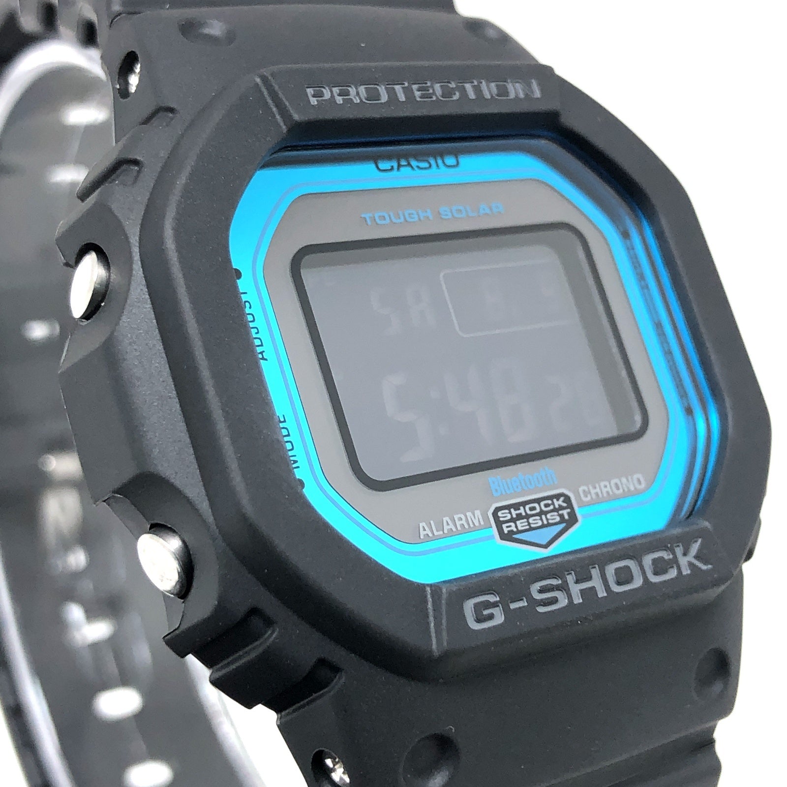 コメント | 2018年10月に発売された、スクエアデザインが人気のDW-5600に、タフソーラーとマルチバンド6の電波ソーラー機能とBluetooth通信機能が搭載されたモデル。ベゼルとバンドにはスタンダードなブラックが採用され、ダイヤルにはメタリックブルー、液晶にはブラックの反転液晶が採用されています。Bluetooth通信機能で専用アプリ「CASIO WATCHES」と連携することにより正確な時刻情報を取得することができます。 |