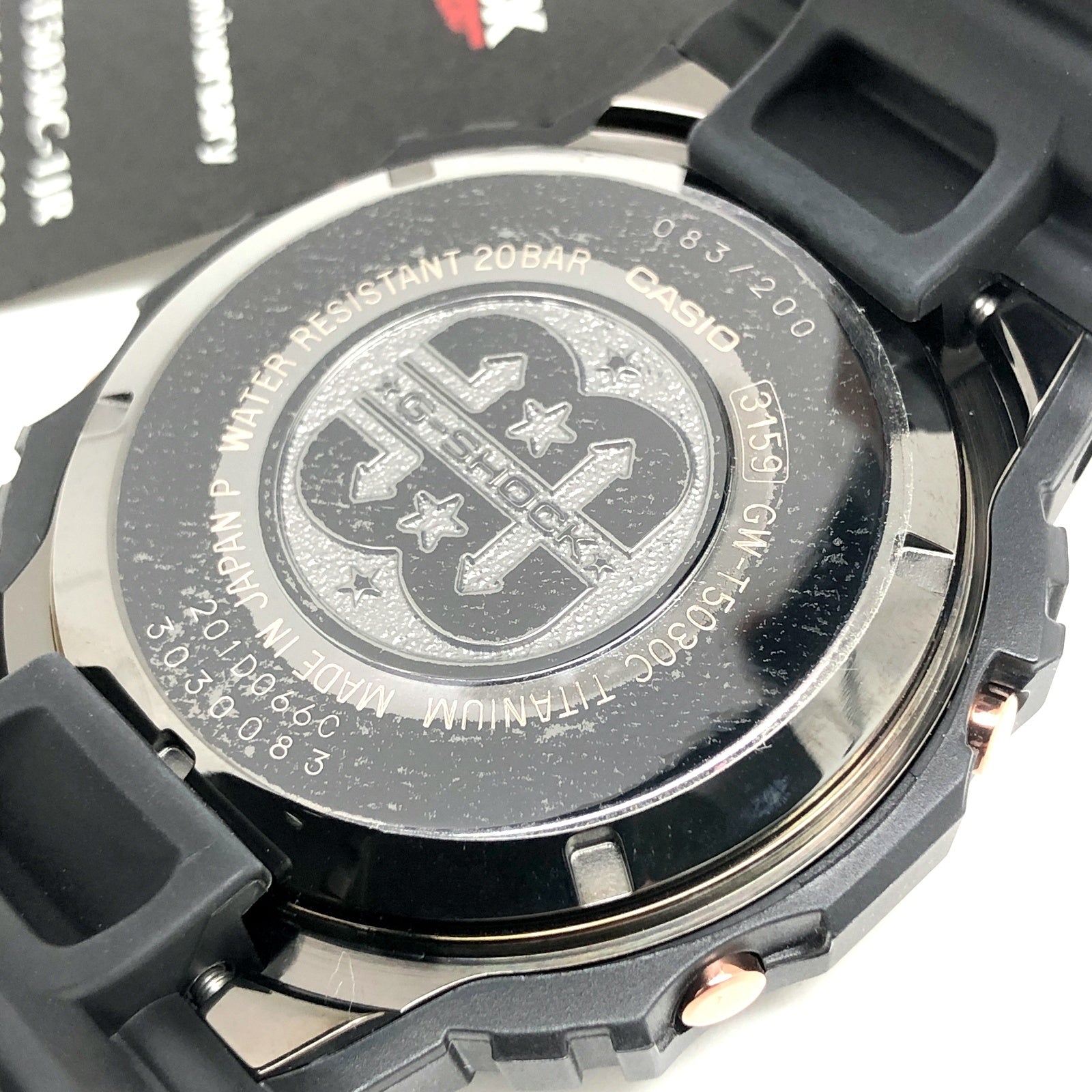 | コメント | 2013年5月にGショック誕生30周年を記念して世界200本限定で発売された、1935年に東京の神田で吉田吉蔵が設立した吉田カバンの人気ブランド「PORTER(ポーター)」とのコラボレーションモデル。ベースには初代G-SHOCKであるDW-5000に、タフソーラーとマルチバンド6の電波ソーラー機能が搭載されたGW-5000を採用。ベゼルとバンドにはスタンダードなブラックを配色し、尾錠や遊環、サイドボタンには使い込んだヴィンテージ感を表現した赤銅色が採用されています。さらにケースや裏蓋・ボタンには、純チタンよりも引張強度や耐力が大幅に高い64チタンが採用されDLC処理が施されています。オリジナルセットにはG-SHOCKタブが付いたPORTERのショルダーバッグが付属します。 |