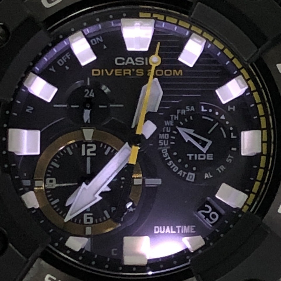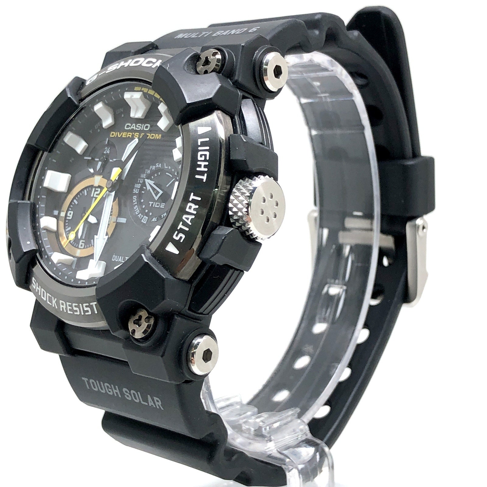 | コメント | 2020年6月に発売された「MASTER OF G」の中で圧倒的な人気を誇るFROGMANのアナログ表示モデル。ケースと裏蓋を一体化させたカーボンモノコックケースが採用され、ダイヤルにはホームタイムのほかにデュアルタイムとダイビングの時間計測を表示しています。バンドには耐熱性や耐油性・耐薬品性に優れたフッ素エマストラーが採用され、より過酷な環境下でも耐えうる仕様になっています。Bluetooth通信機能によりスマートフォンと接続することにより正確な時刻情報が取得され、専用アプリでは3000箇所の潮汐データを簡単に設定することができます。 |