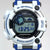 | コメント | 2016年7月に、イルカ・クジラと自然の素晴らしさを伝える活動に取り組んでいる環境団体「アイサーチ・ジャパン(ICERC)」の設立25周年を記念して発売されたFROGMANのイルカ・クジラモデルです。ベースには電波ソーラーとトリプルセンサーが搭載されたGWF-D1000を採用。バンドには設立25周年を記念して「アイサーチ・ジャパン」のロゴに使用されているブルーが配色し、ロゴと「25TH ANNIVERSARY」の文字、テーマの「Love The Sea And The Earth」がプリントされています。裏蓋にはシンボルマークが刻印され、LEDバックライト発光時には「アイサーチロゴ」が浮かび上がります。 |