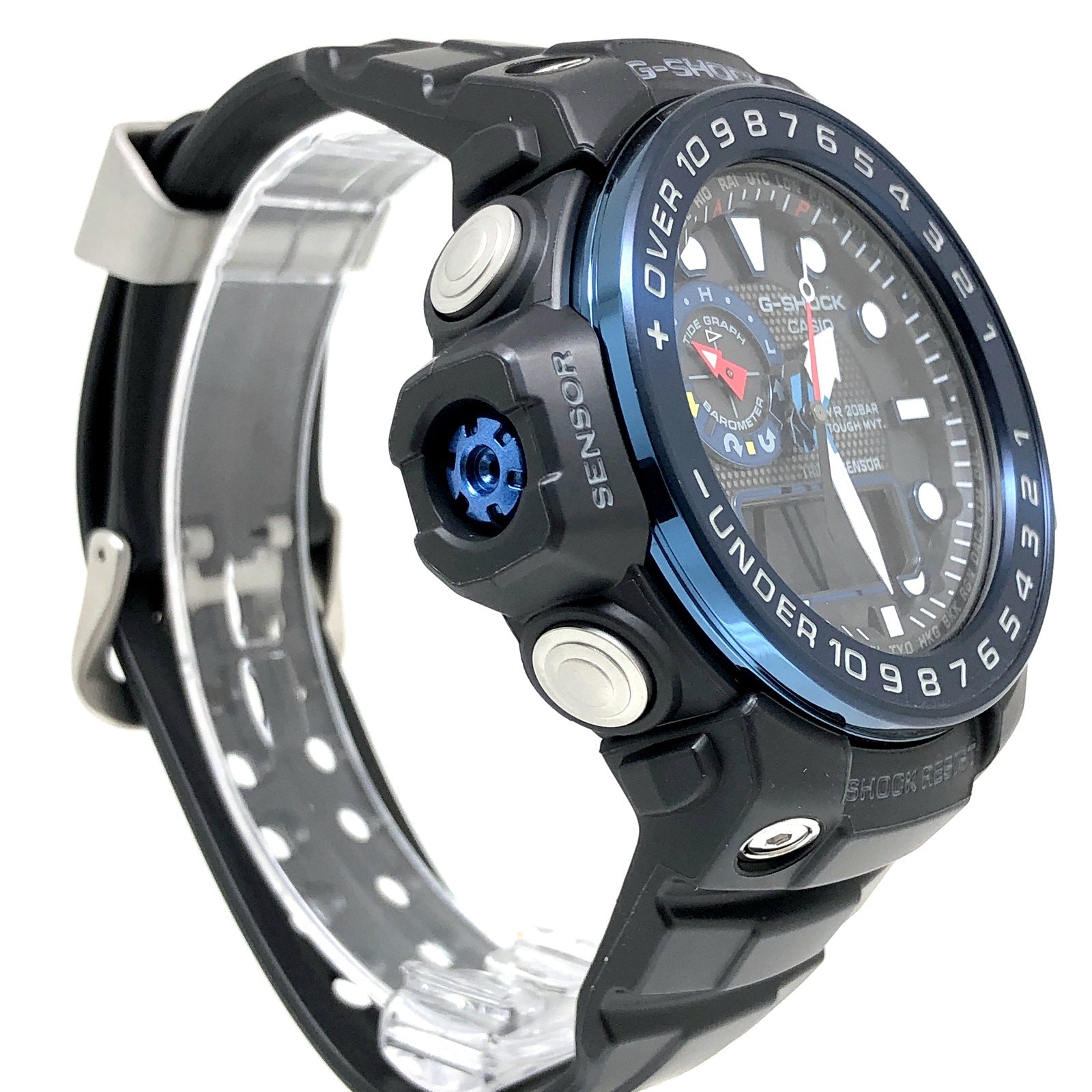 コメント | 2014年6月に発売された、過酷な環境下である海上での使用を想定し、タフソーラーとマルチバンド6の電波ソーラー機能と高度・気圧・方位・温度計測ができるトリプルセンサーが搭載された「GULFMASTER(ガルフマスター)」。デザインは海を感じさせる艦船の計器やコンパスをモチーフに、ライトボタンやセンサーボタンにはブルーやレッドが配色され、メタルベゼルにはメタリックブルーが配色されています。海での必須であるタイドグラフとムーンデータ機能も搭載され、ライトにはダブルLEDライトが搭載されています。 |