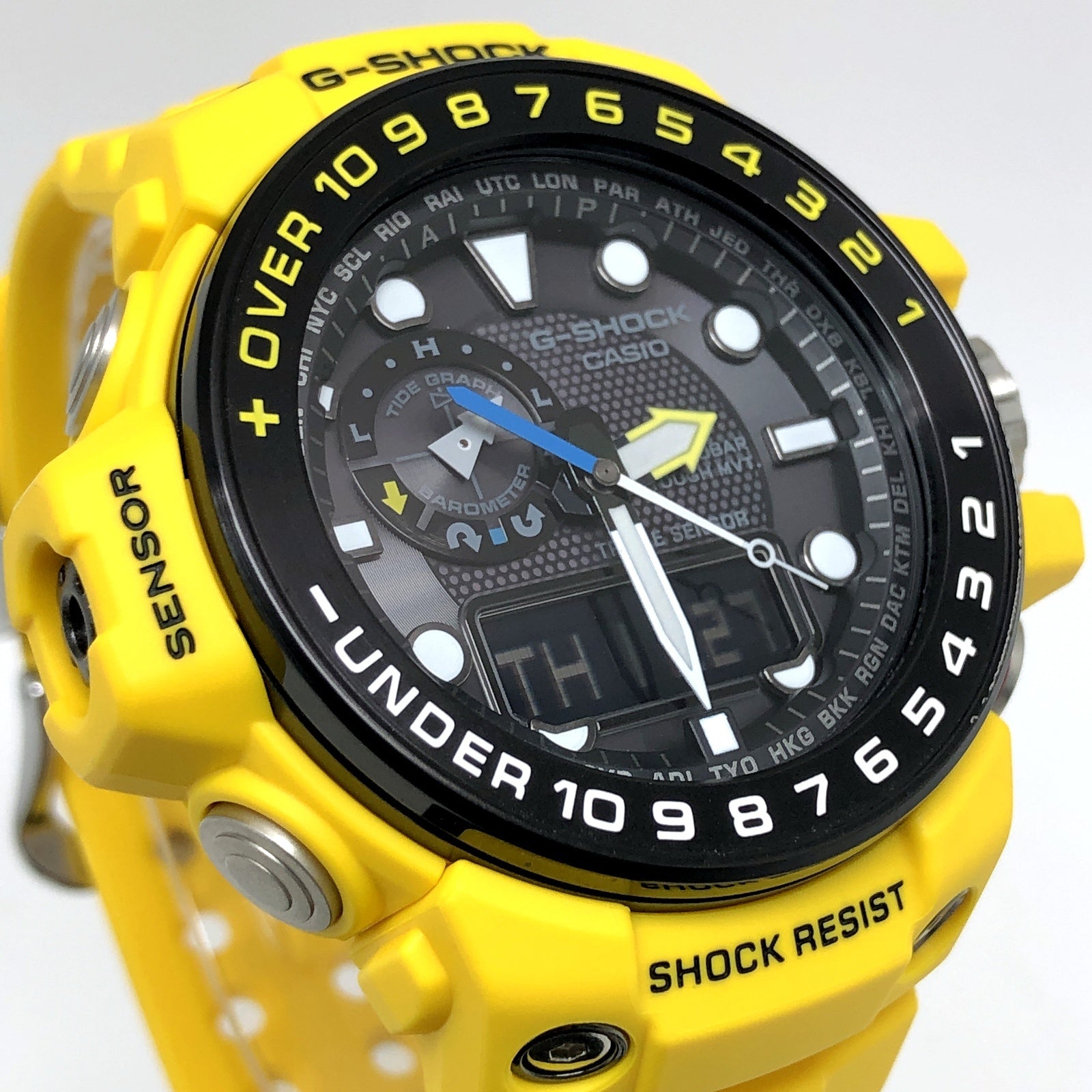 | コメント | 2016年4月に発売された、過酷な環境下である海上での使用を想定した「GULFMASTER(ガルフマスター)」のカラーテーマモデル。ベースには、タフソーラーとマルチバンド6の電波ソーラー機能と高度・気圧・方位・温度計測ができるトリプルセンサーが搭載されたGWN-1000を採用。ベゼルとバンドにはイエローが採用され、メタルベゼルと文字盤にはブラックが配色されています。海での必須機能であるタイドグラフとムーンデータも搭載され、ライトにはダブルLEDライトが採用されています。 |