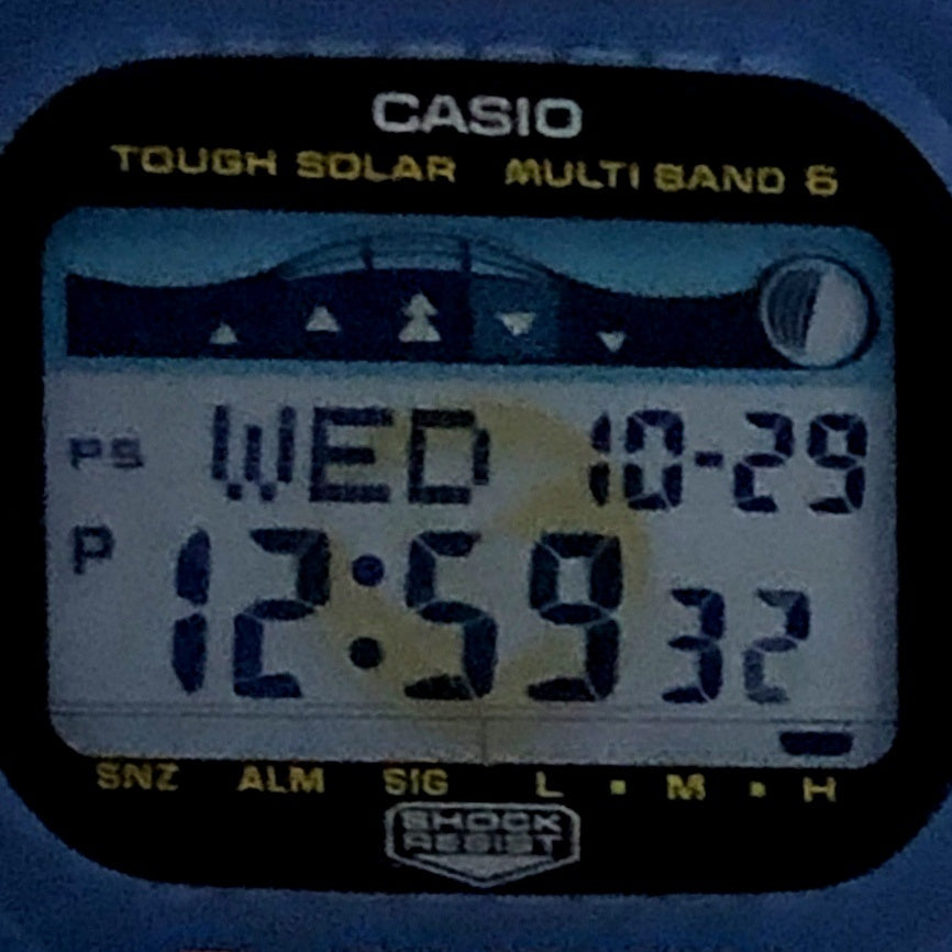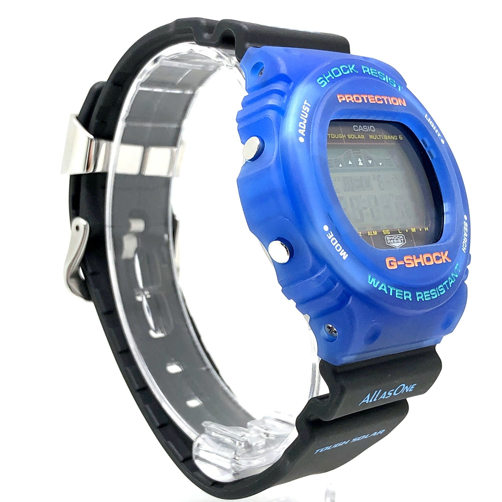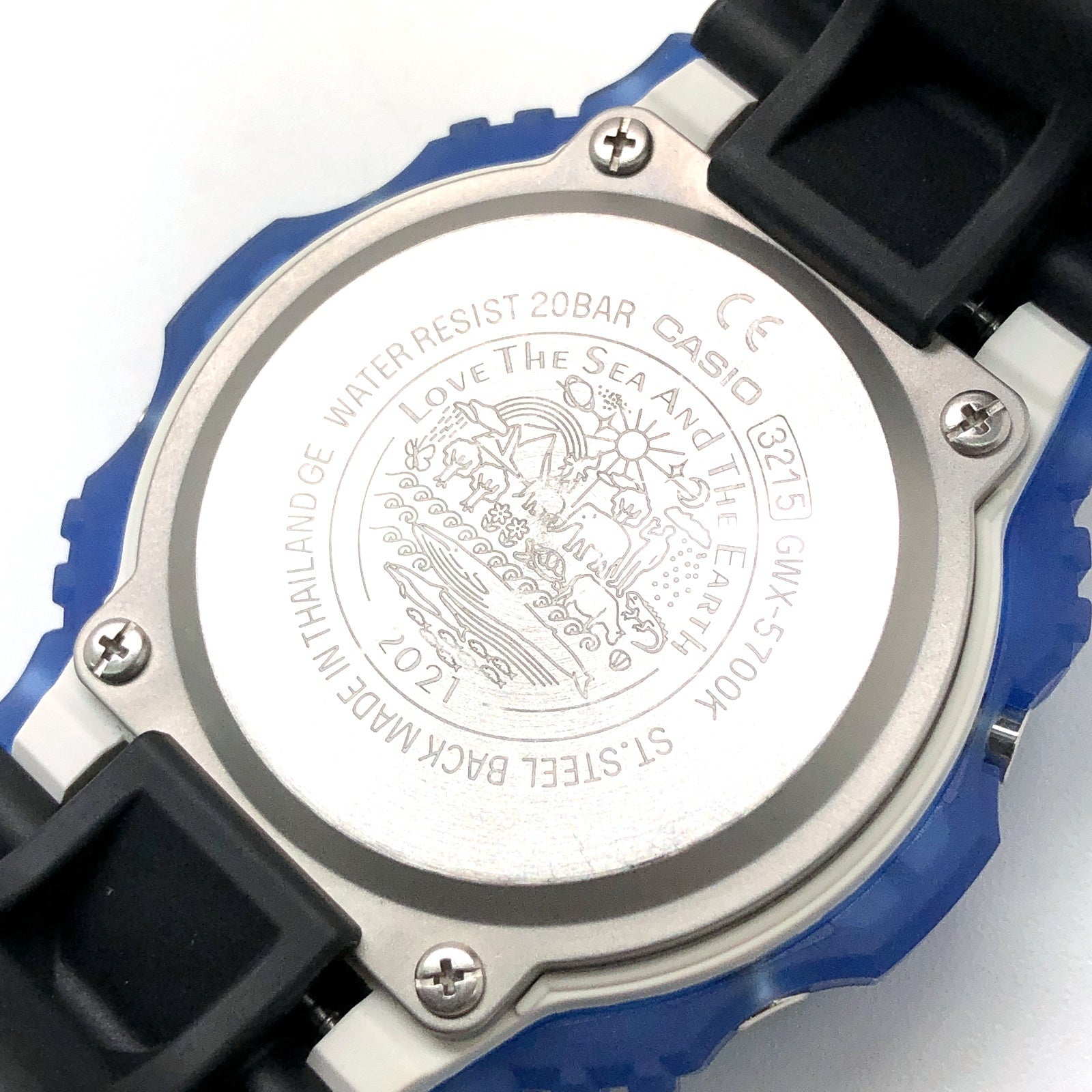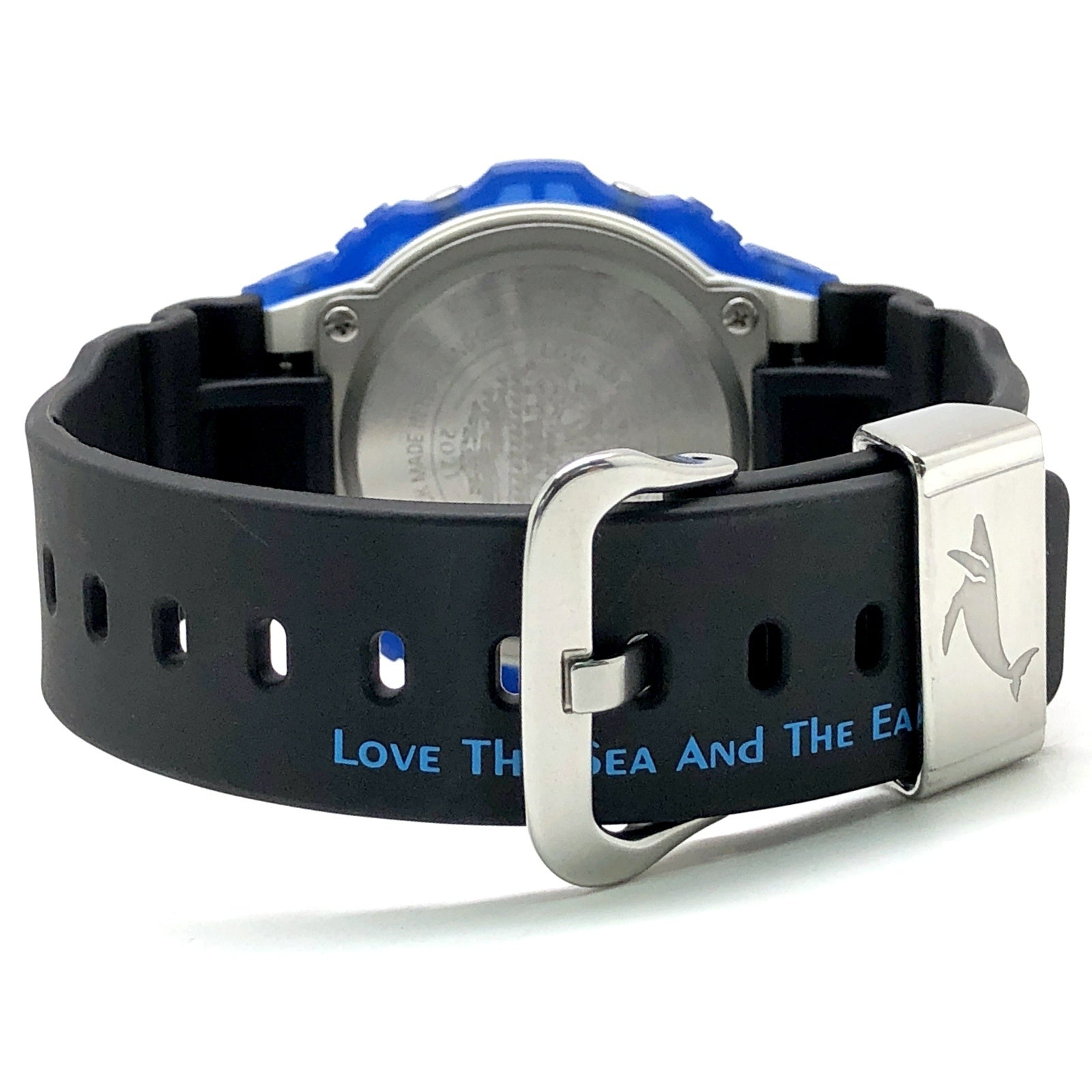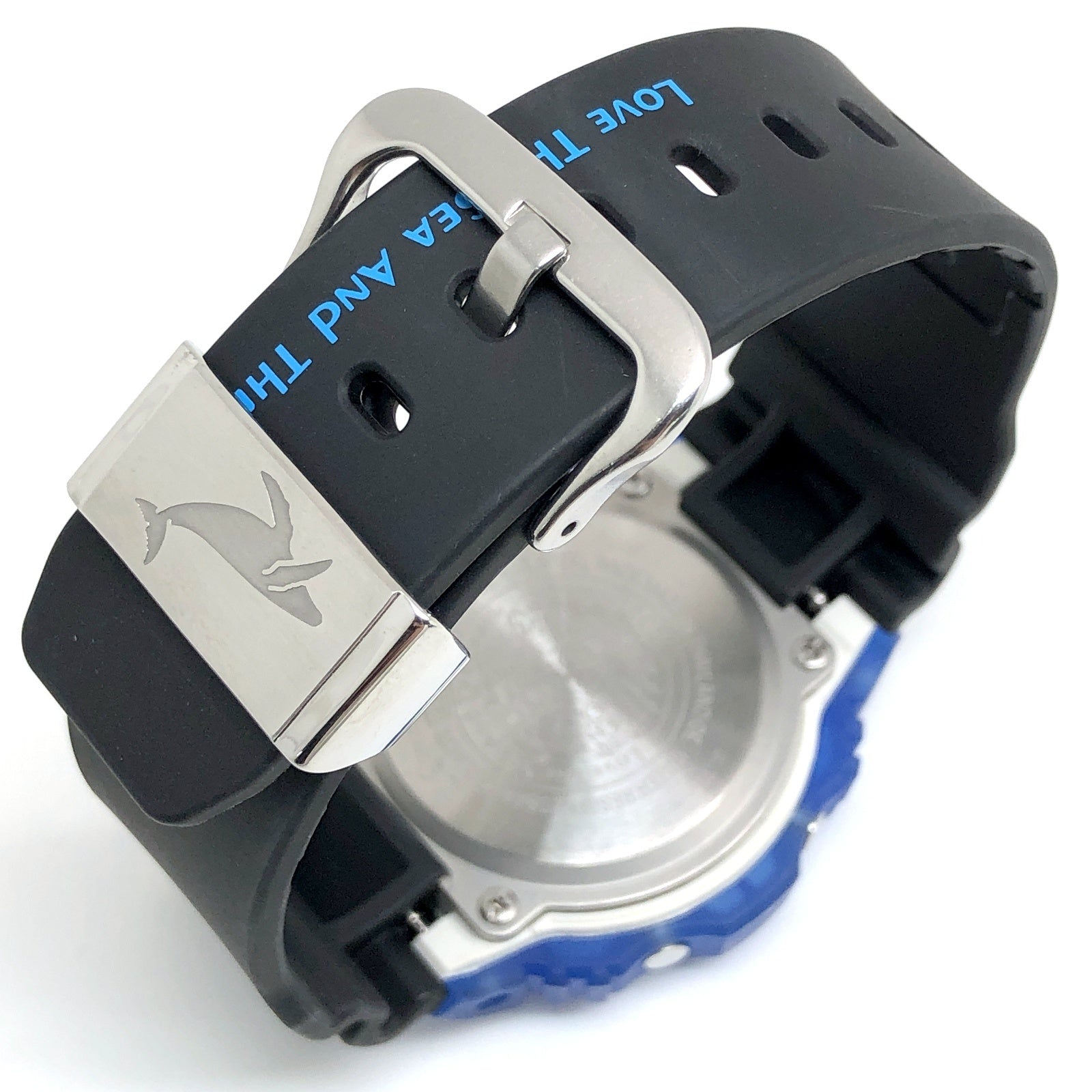 | コメント | 2021年6月にアイサーチジャパン(ICERC)の設立30周年を記念して発売された「G-LIDE(ジーライド)」のイルカクジラモデル。ベースにはスティングの愛称で親しまれている5700シリーズに、タフソーラーとマルチバンド6の電波ソーラー機能、サーファーのマスト機能のタイドグラフとムーンデータを搭載したGWX-5700を採用。ベゼルにはアイサーチジャパンのロゴカラーでブルーのスケルトン樹脂が採用されています。バンドには「ICERC」や「30TH ANNIVERSARY」の文字がプリントされ、遊環にはクジラのシルエットが刻印されています。裏蓋には「Love The Sea And The Earth」のシンボルマークが刻印されています。 |