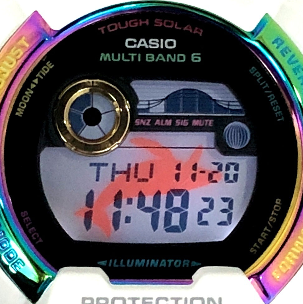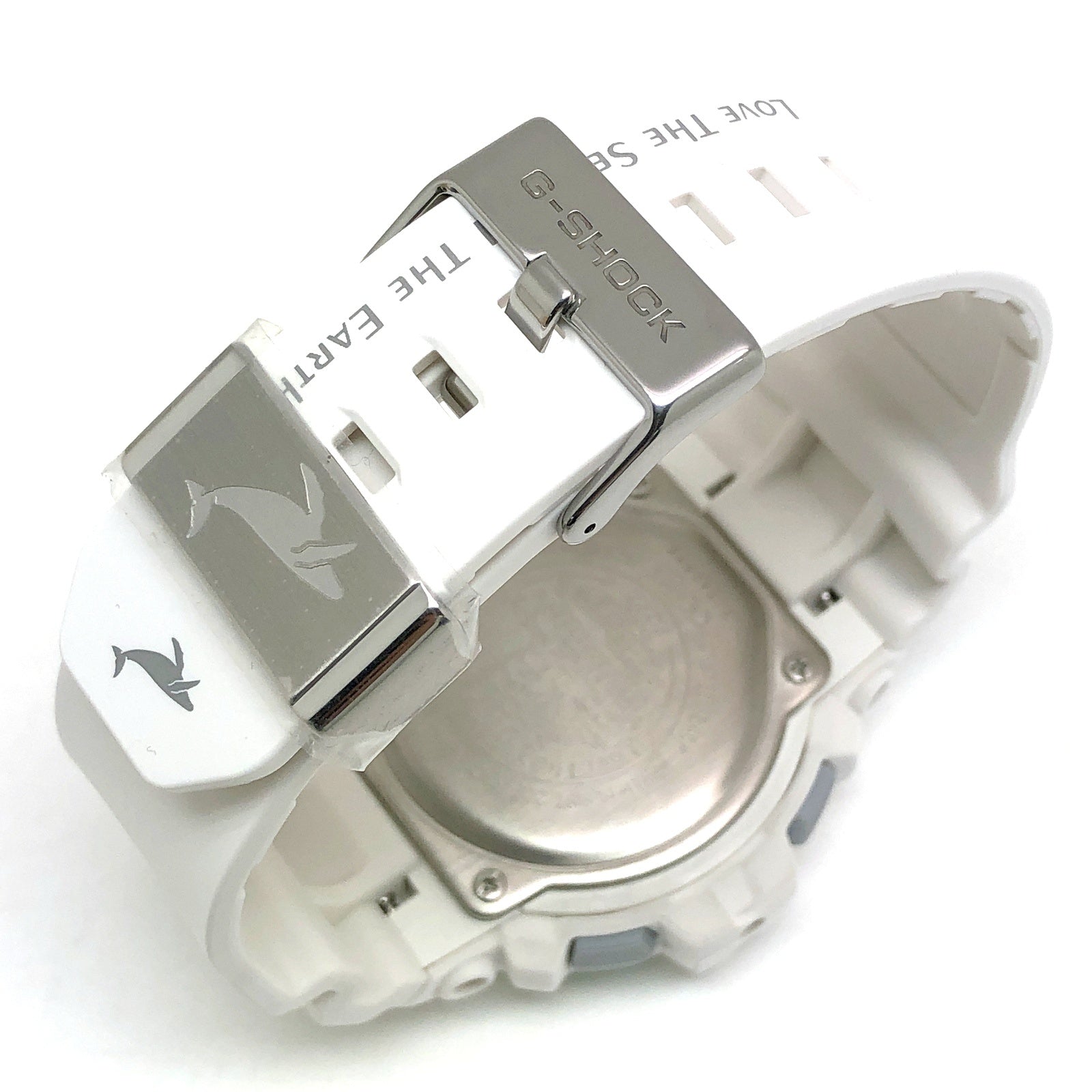 | コメント | 2022年6月に発売された、イルカ・クジラと自然の素晴らしさ伝える活動に取り組む「ICERC(アイサーチジャパン)」とのコラボレーションモデル「イルクジ2022」です。ベースにはG-LIDEのビッグケースモデルGWX-8900を採用。ベルトとベゼルはホワイトをベースに、ベゼルのステンレス部には「虹」をイメージしてレインボーIPが施されています。ベルトにはアイサーチジャパンのロゴがプリントされ、裏蓋には「Love The Sea And The Earth」のシンボルマークが刻印されています。LEDバックライト発光時にはクジラが浮かび上がります。 |