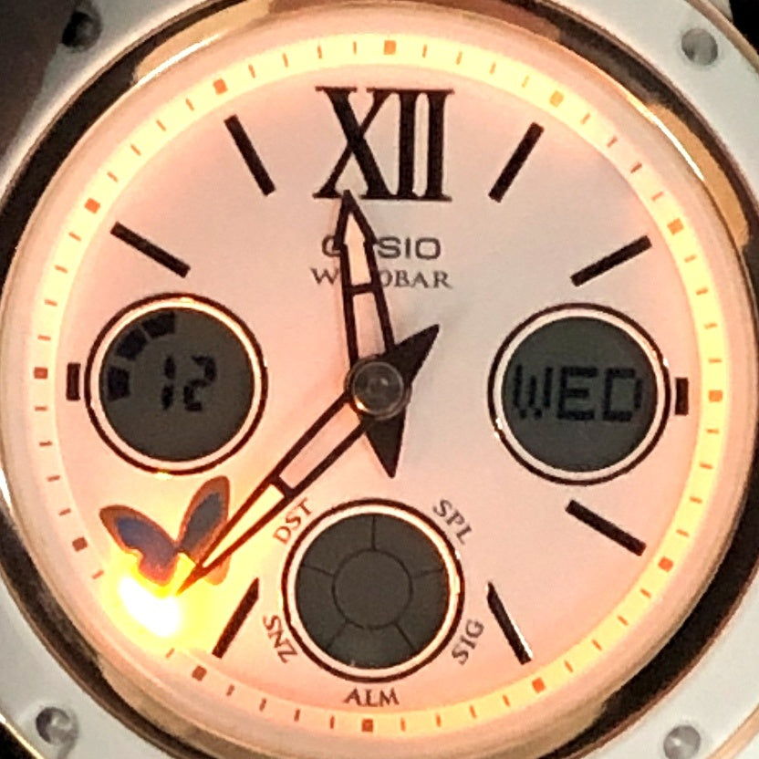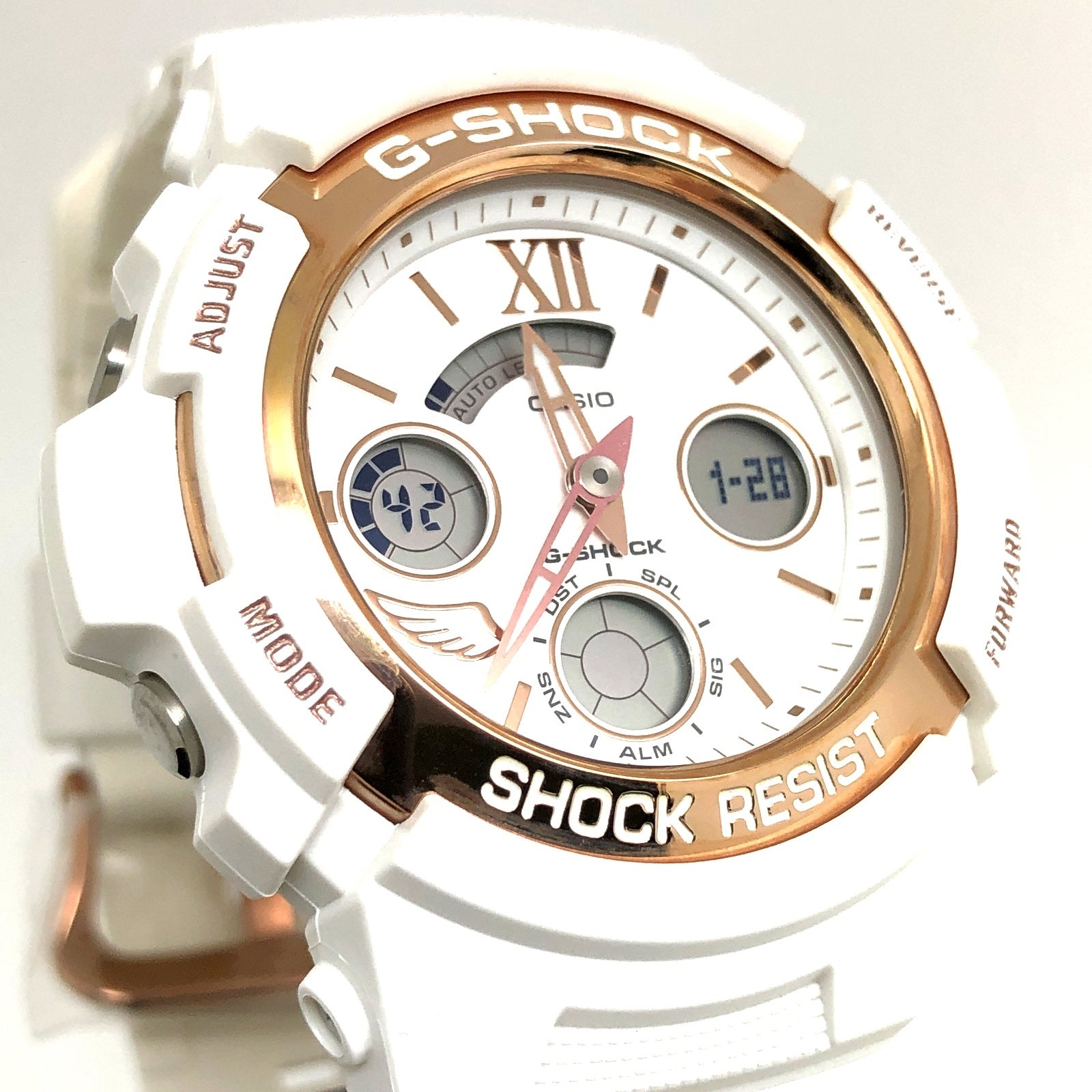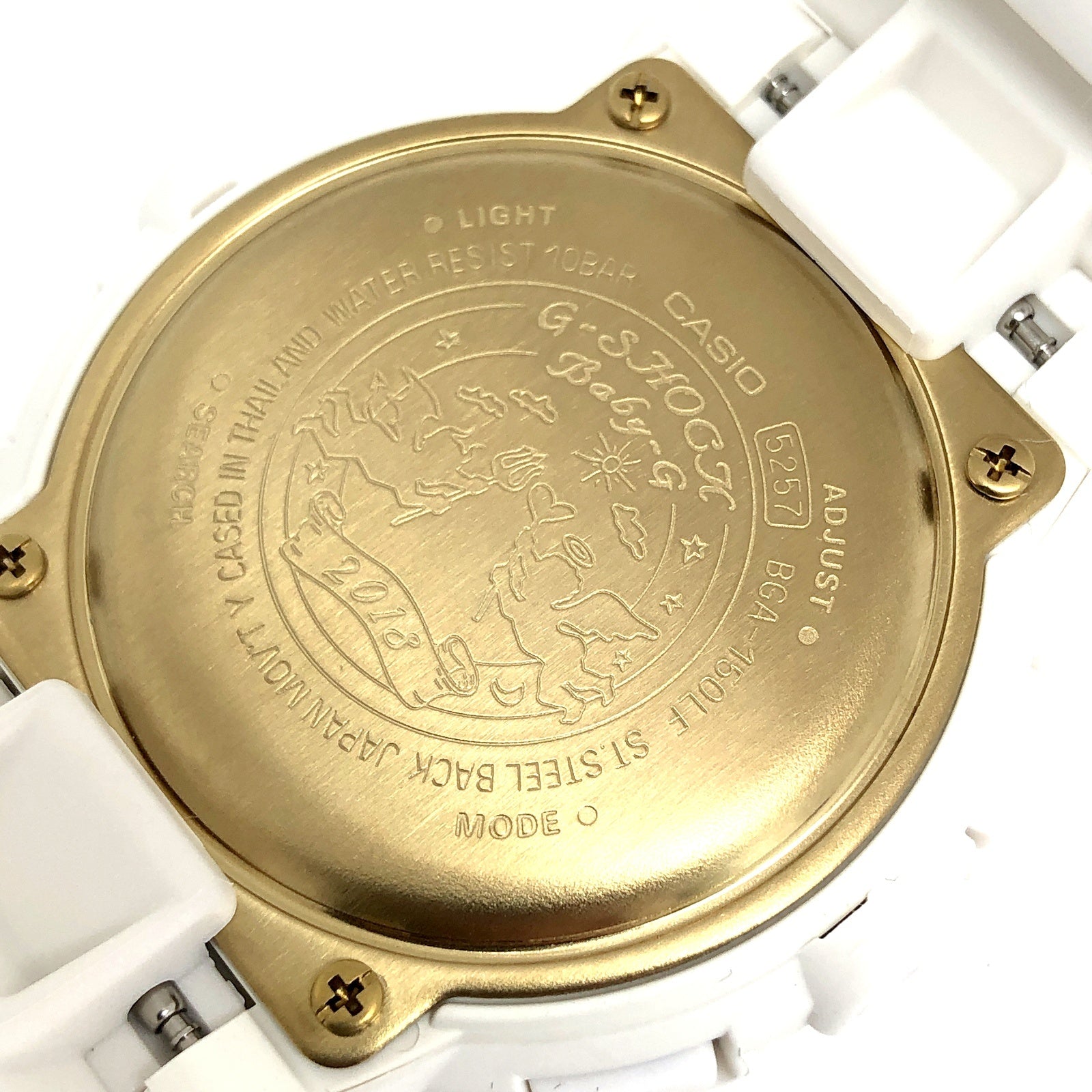 | コメント | 2018年11月に発売された、毎年クリスマス限定ペアウォッチとして人気の「G Present’s Lover’s Collection(ジープレゼンツラバーズコレクション)」です。2018年は「Love is tough」がテーマとなっており、苦難を乗り越え永遠の愛を貫いた神(キューピッド)と人間(プシュケ)が表現されています。ベースにはメタルベゼルが採用されたアナログ/デジタルモデルAW-591とBGA-150が採用され、ベゼルとバンドにはホワイトが採用され、ベゼルリングやインデックス、時分針などのメタルパーツにはゴールドが配色されています。裏蓋にはラバーズコレクションのシンボルマークである「天使と悪魔」が刻印され、G-SHOCK35周年を記念してゴールドIPが施されています。 |