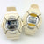 | コメント | 2001年11月に発売された、毎年クリスマス限定ペアウォッチとして人気の「G Present’s Lover’s Collection(ジープレゼンツラバーズコレクション)」です。2001年は「天使と悪魔」がテーマとなっており、真っ白な雪をイメージし、見る角度によって色が変化する偏光パール塗装が施されています。メンズモデルのG-SHOCK(G-2000LV)のバックライトにはデビルが浮かび上がり、レディースモデルのBaby-G(BGM-220LV)にはエンジェルが浮かび上がります。裏蓋にはラバーズコレクションのシンボルマークである「天使と悪魔」が刻印されています。 |