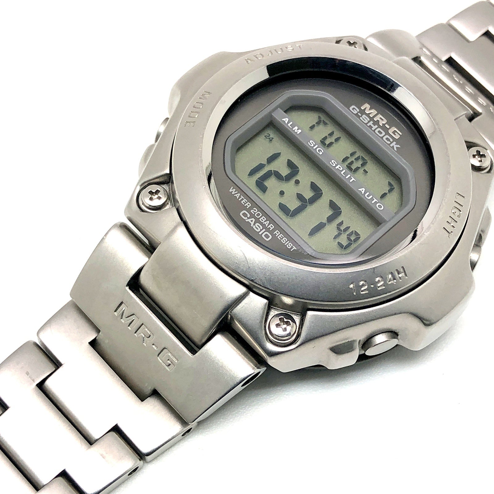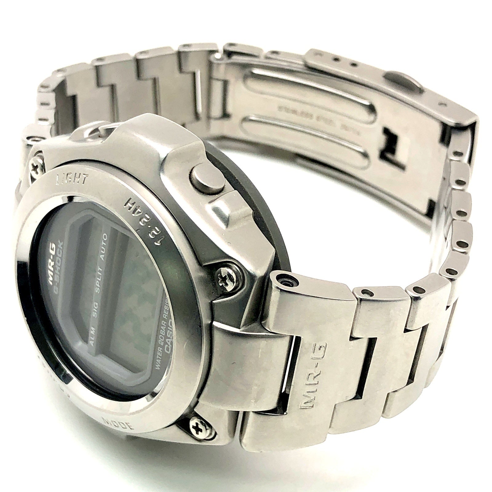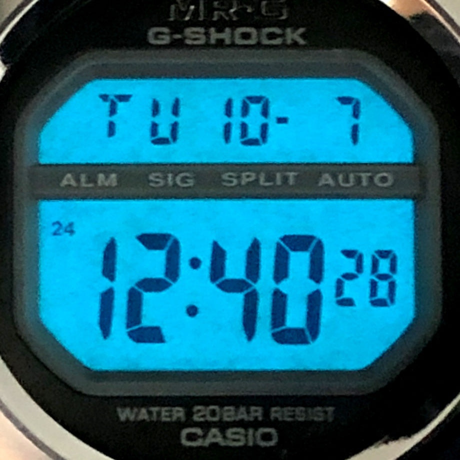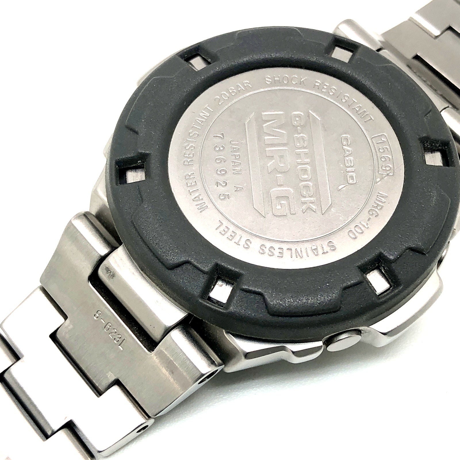 コメント | G-SHOCK初のフルメタル仕様のMR-Gです。風防は高級感のある球面ガラスを採用し。裏蓋はスクリューバックでMR-Gの刻印が施され、裏側からの衝撃を保護するためにバックプロテクターを装着しています。 |