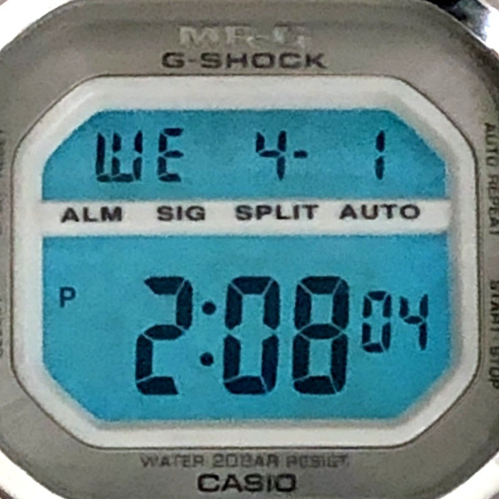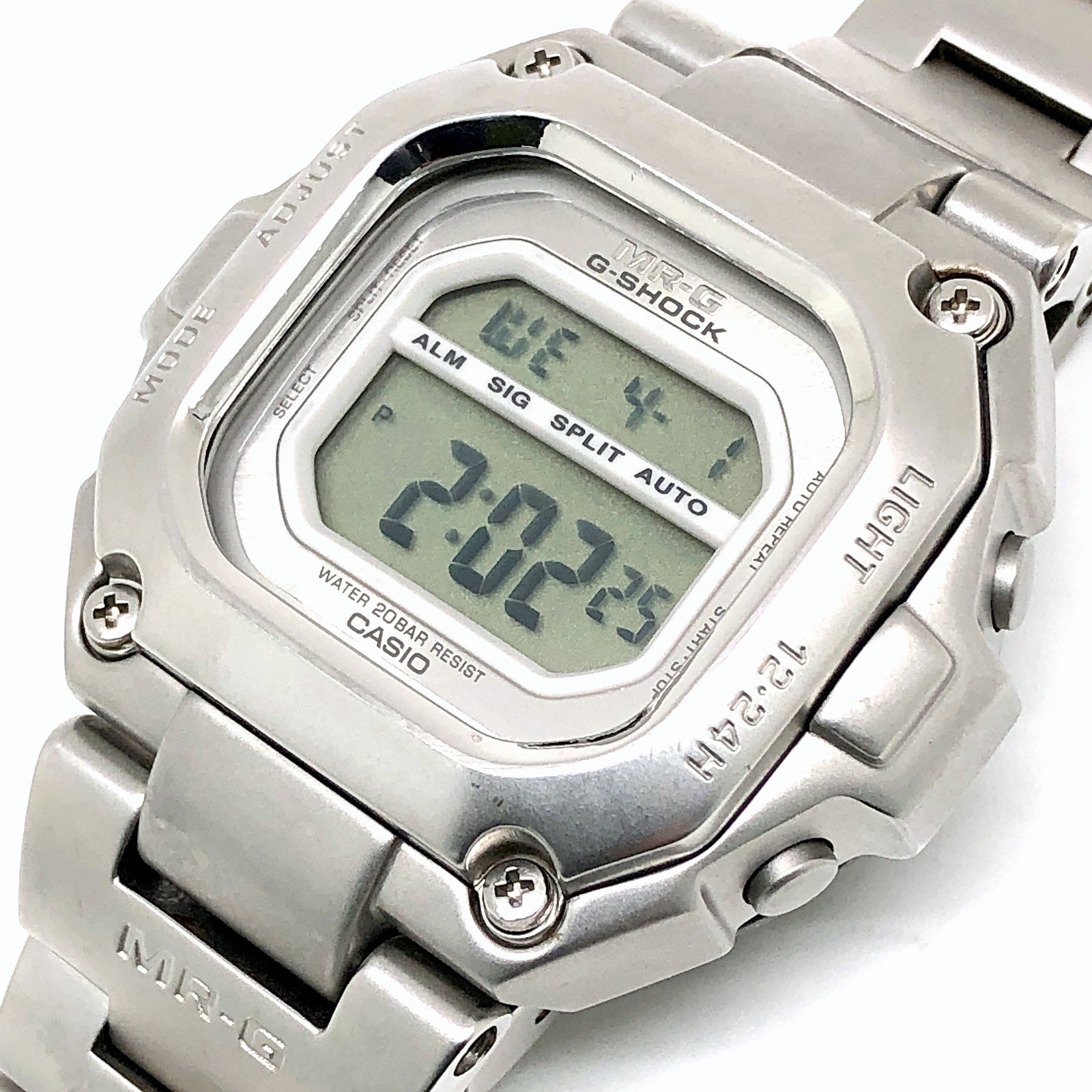 | コメント | 1996年11月に発売された、G-SHOCKで初めてフルメタル化した「MR-G」。ラウンドとスクエアの2タイプと、ステンレススチールとチタンの合計5モデルが発売。MRG-110-7にはステンレス素材のスクエアデザインが採用されています。裏蓋には衝撃を保護するためのバックプロテクターが装着されています。 |