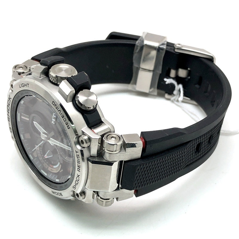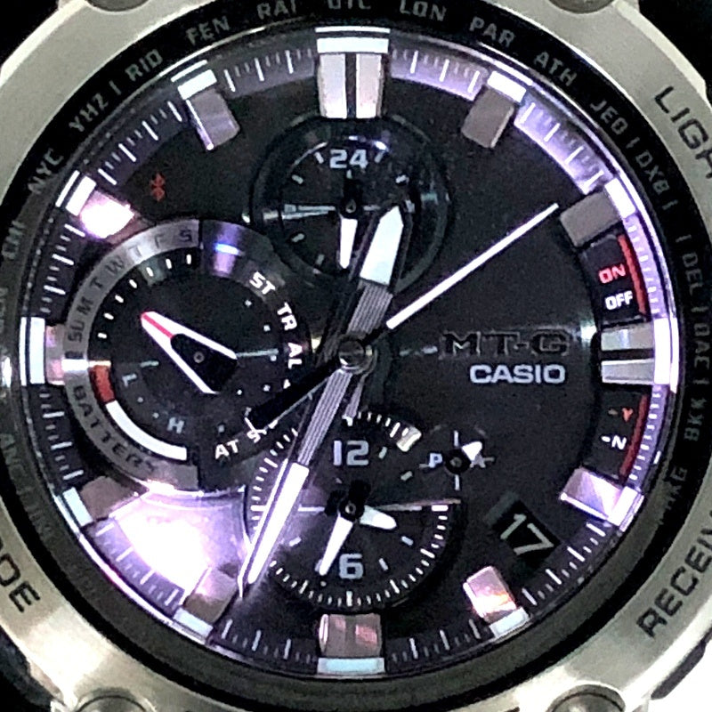 | コメント | 2018年6月に発売された、メタルと樹脂が融合したMT-Gのソフトウレタンバンドが採用されたBluetooth通信搭載モデル。軽量化と耐衝撃性を実現した、シリーズ初のミッドサイズモデルです。機能面では、タフソーラーとマルチバンド6の電波ソーラー機能や、耐衝撃・耐遠心重力・耐振動構造のトリプルGレジストに加え、Bluetooth通信機能で専用アプリ「CASIO WATCHES」と連携することにより正確な時刻情報を取得することができます。 |