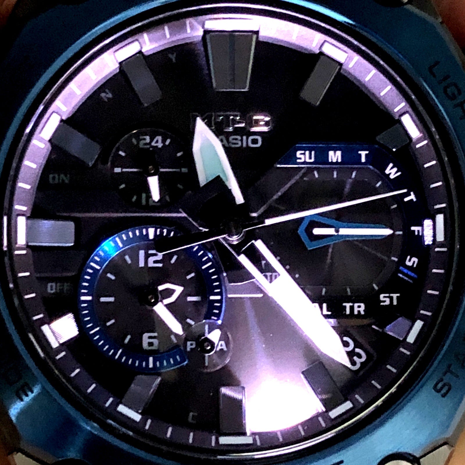 | コメント | 2020年11月に発売された、メタルと樹脂を融合し、耐衝撃・耐遠心重力・耐振動のトリプルGレジストや電波ソーラー、モバイルリンクなどの先進技術が搭載されたMT-Gの、一体構造のカーボンモノコックケースが採用されたモデルです。カーボン素材で作られたケースの外側をメタルパーツで覆った「デュアルコアガード構造」で、ケースサイドがメタルにすることで洗練されたデザインに仕上げられています。バンドには装着性の高いソフトウレタンバンドが、風防には透明度の高いサファイヤガラスが採用されています。Bluetooth通信機能で専用アプリを接続することにより正確な時刻情報を取得することができます。 |
