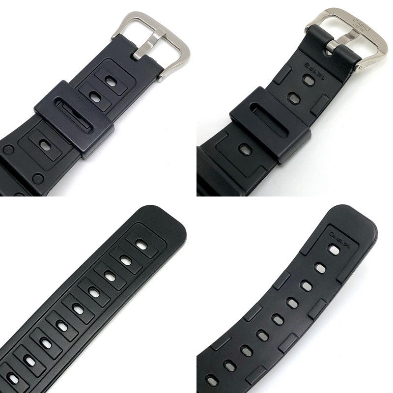 | 状態詳細 | ガラス面(右側中央)に極小の打痕があります。年代は不明ですがカシオ公式販売の段無し(フラット)ベゼルが装着されており、サイドビスはマイナス、バンドは141F9/141F10です。ベルトやベゼルに薄い小傷や色むらなどが見られますが、使用感の少ない綺麗な商品です。 付属品:箱・ケース |